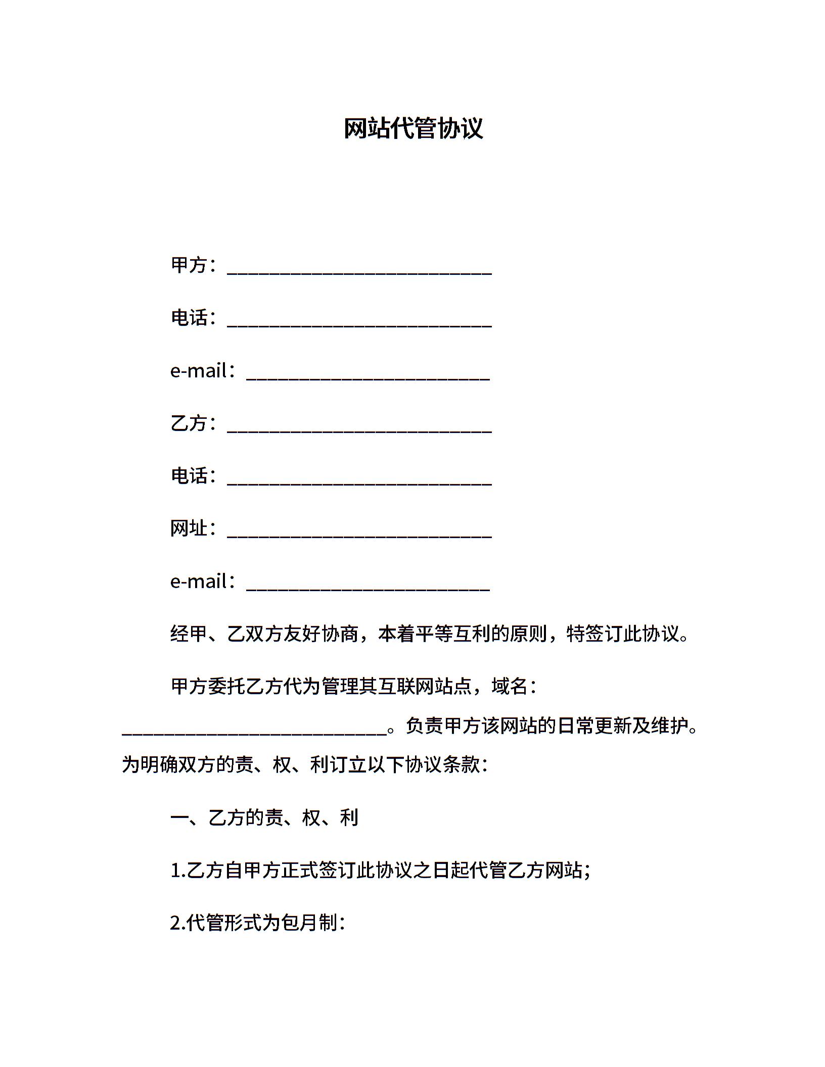 网站代管协议
