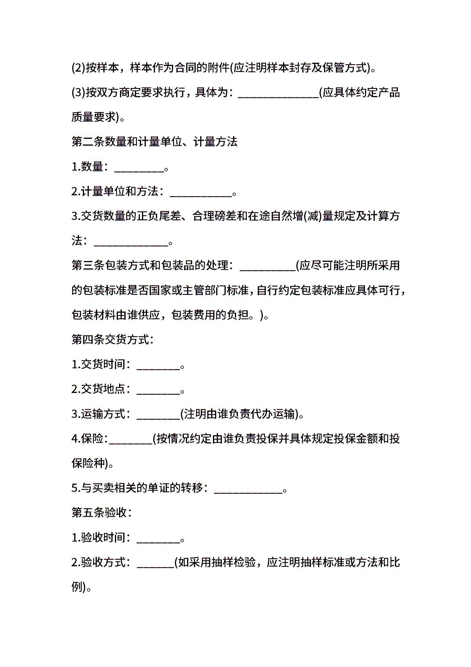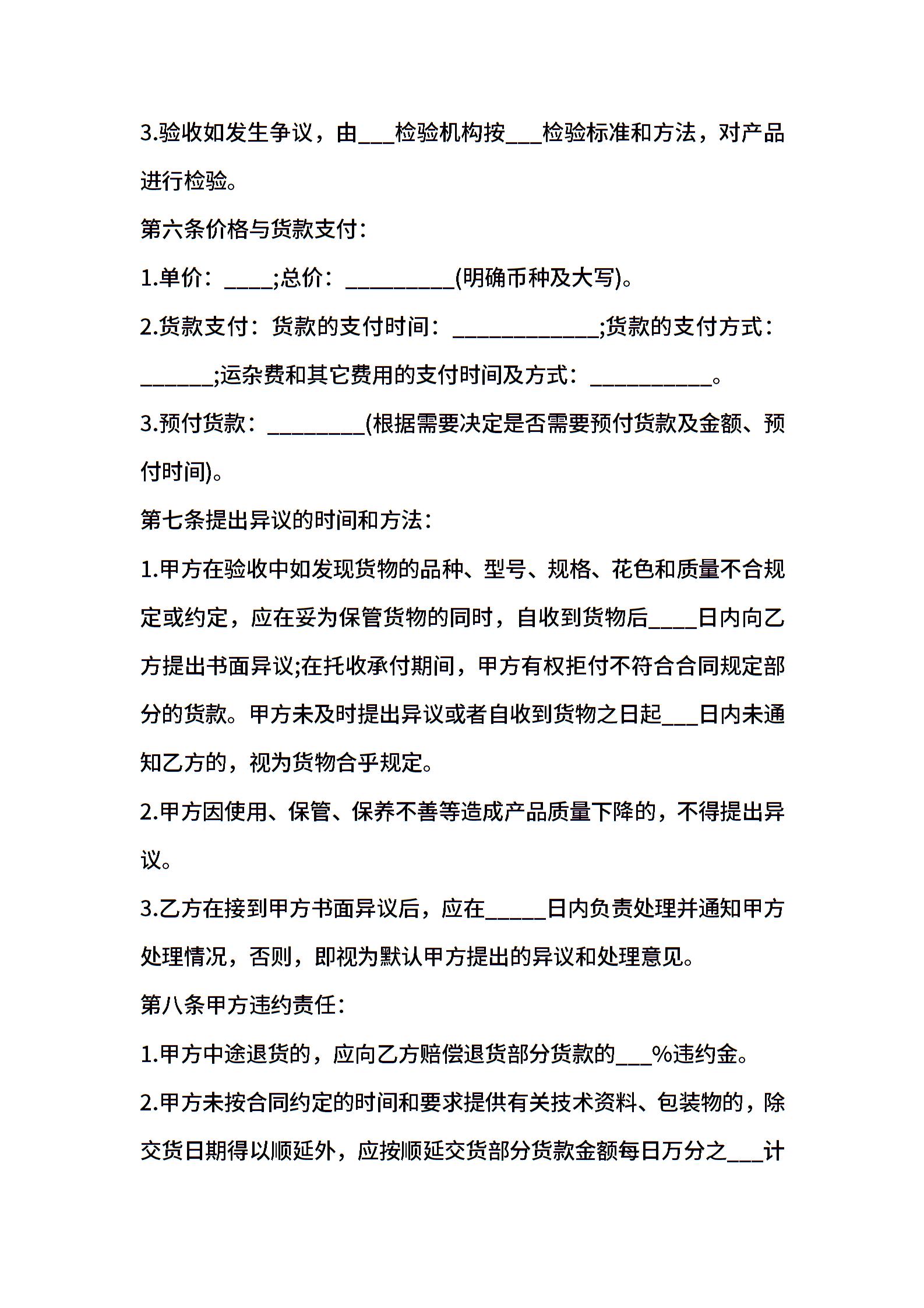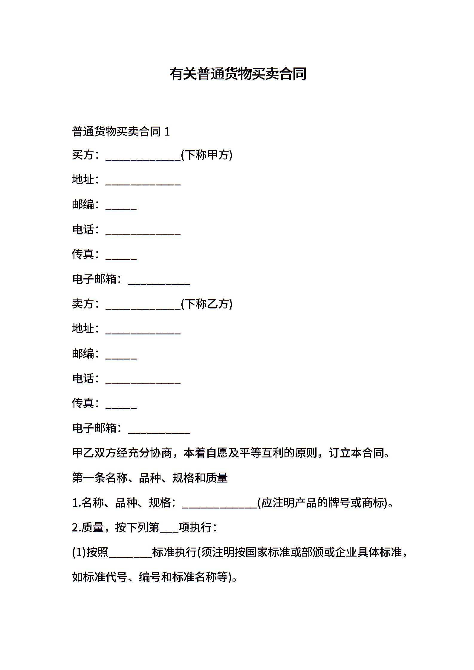 有关普通货物买卖合同