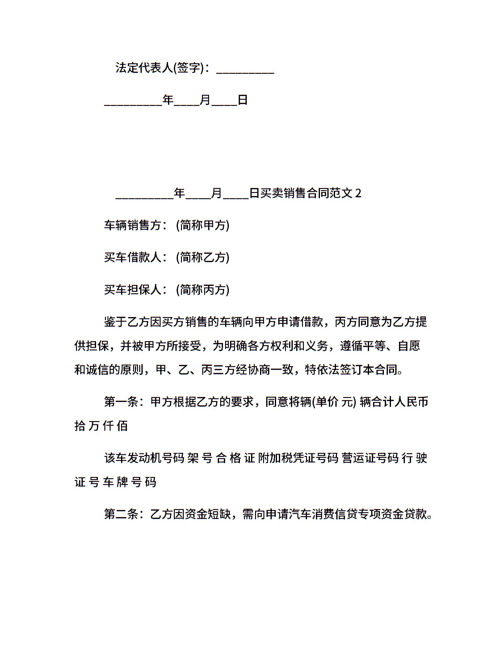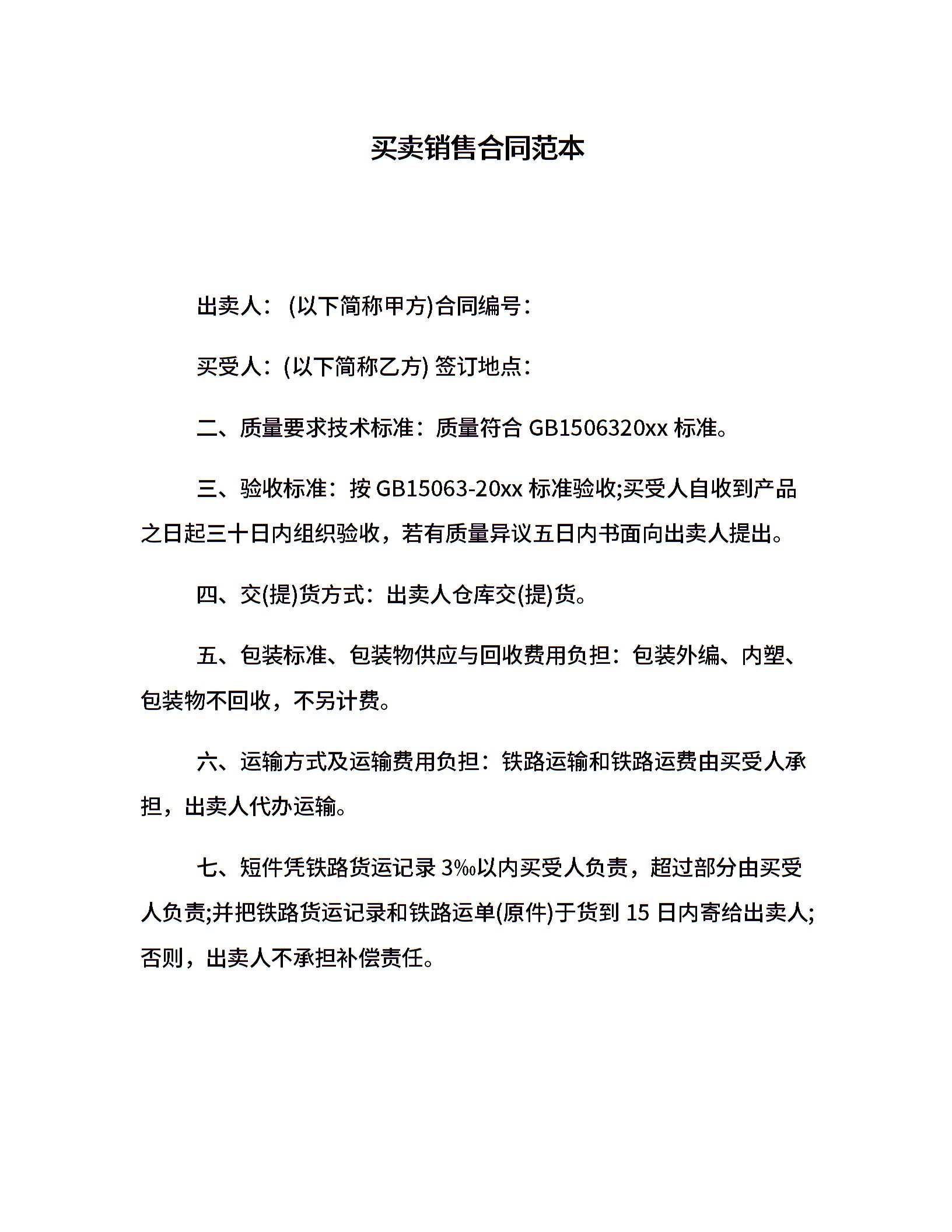 买卖销售合同范本
