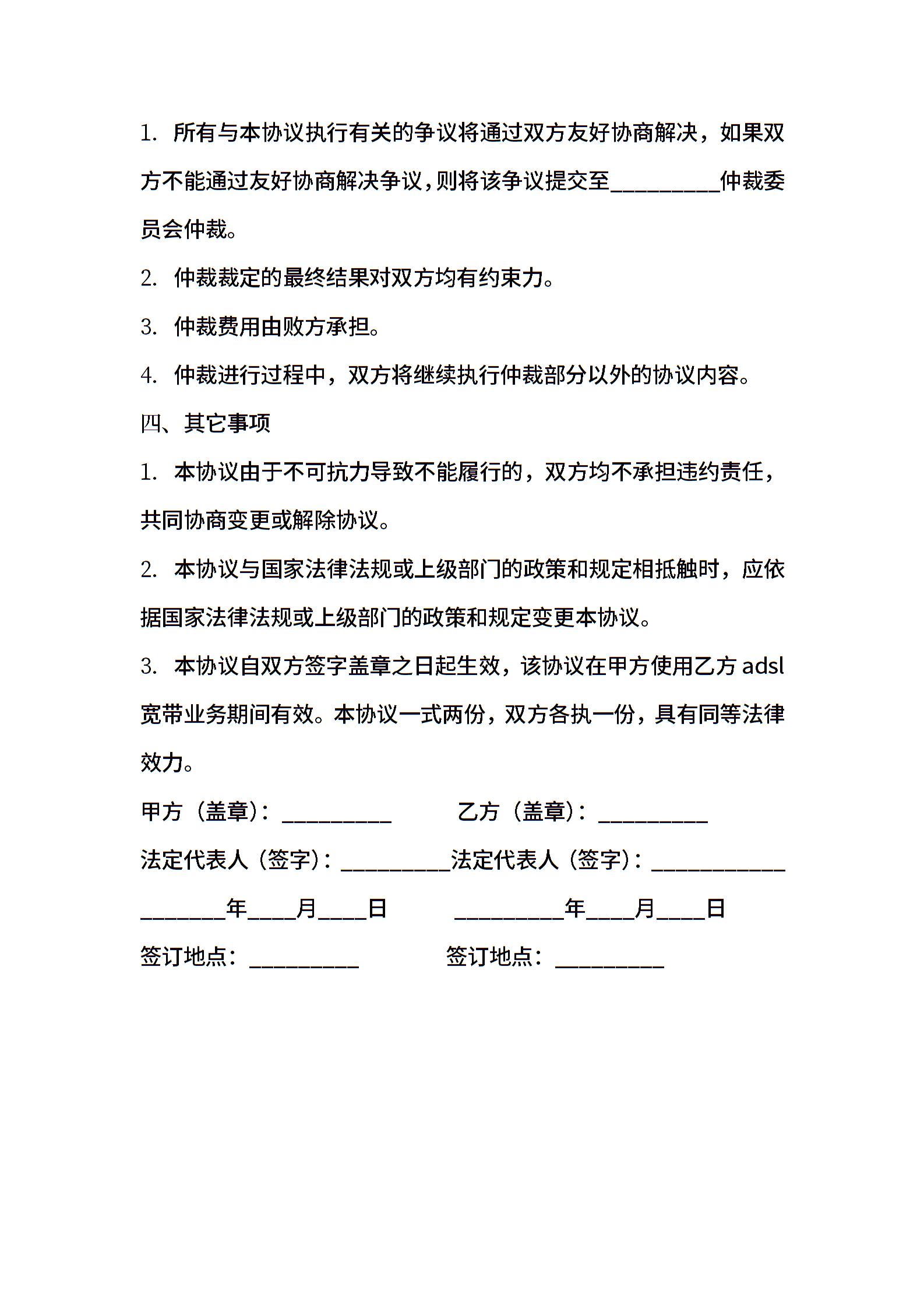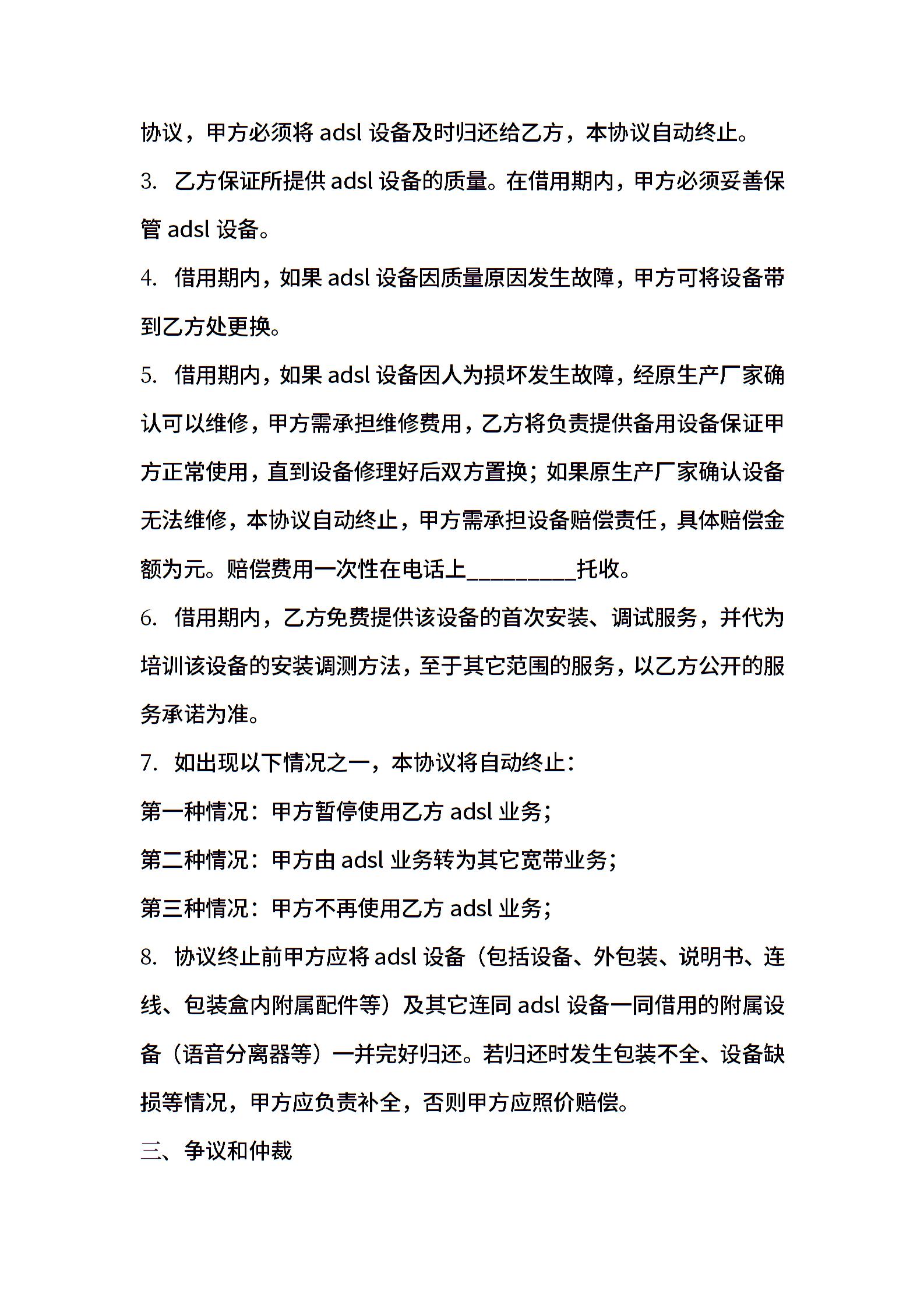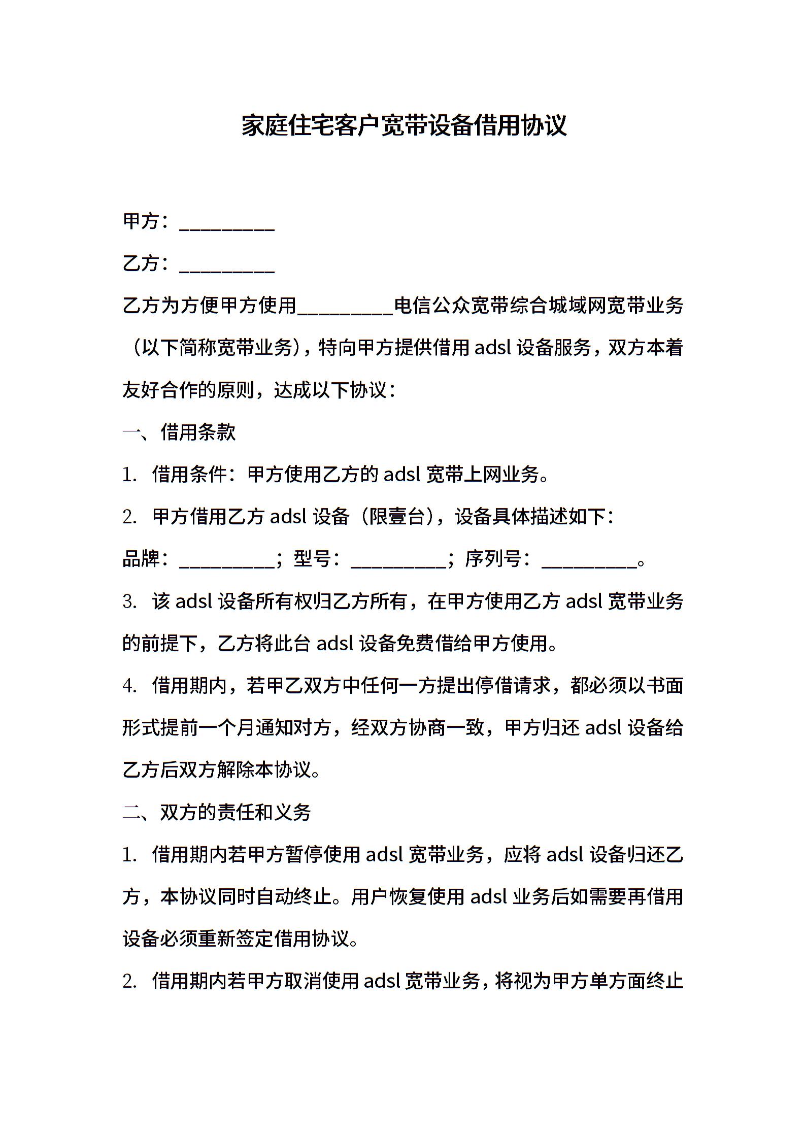 家庭住宅客户宽带设备借用协议