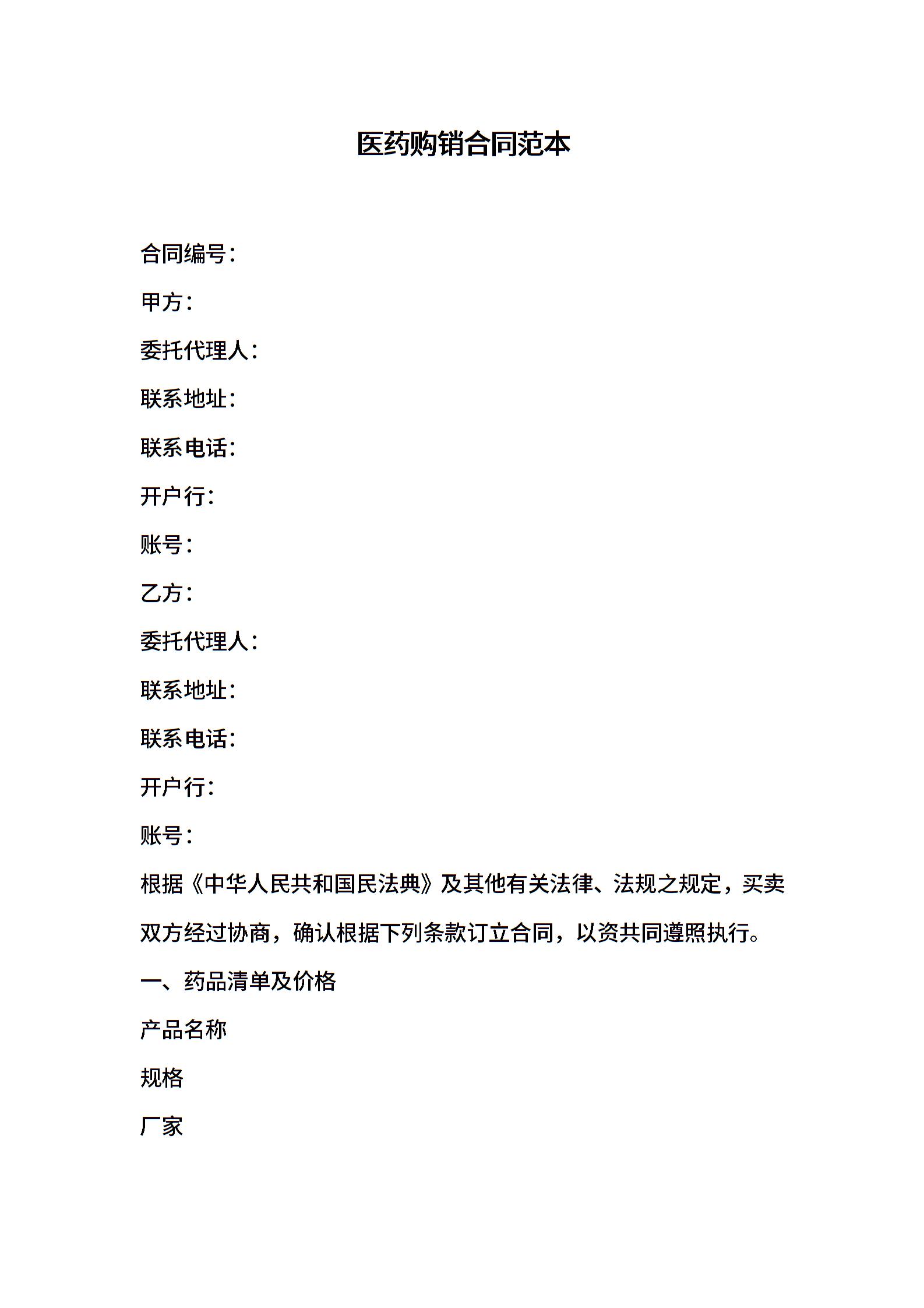 医药购销合同范本