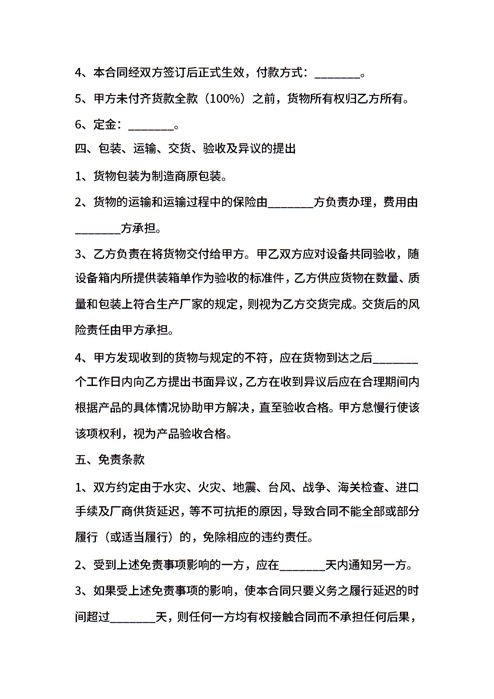 • 分类 购销合同