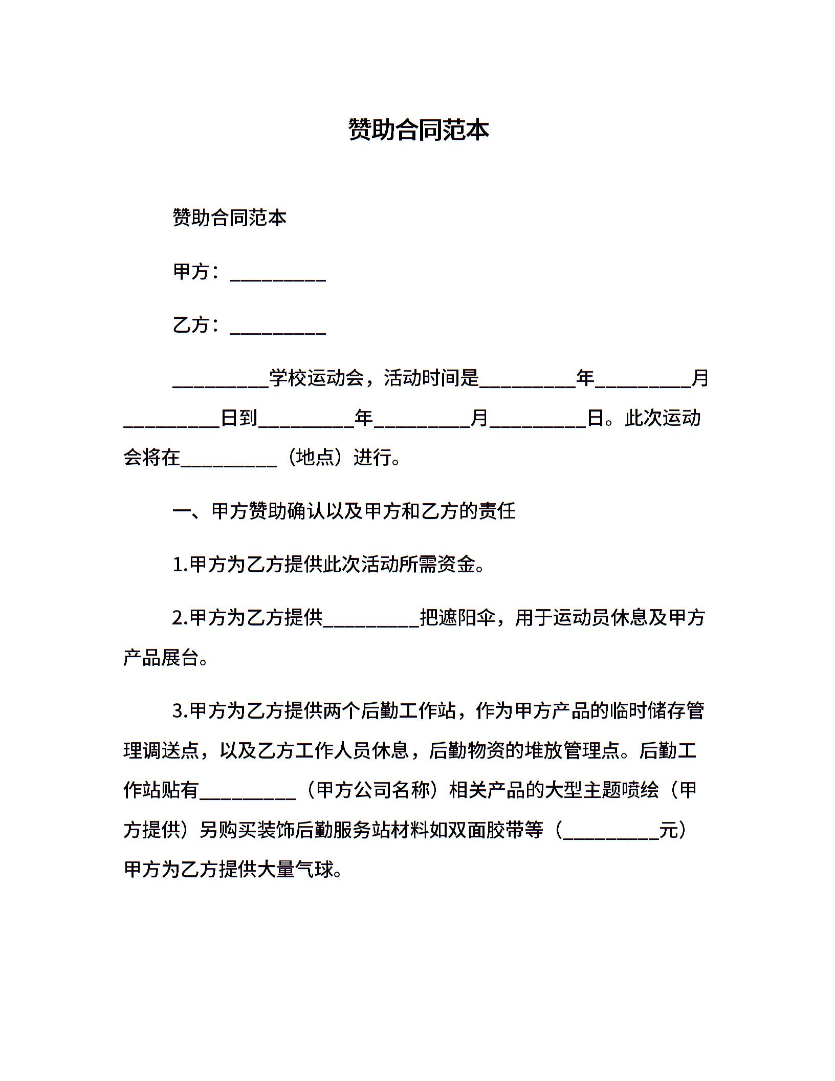赞助合同范本