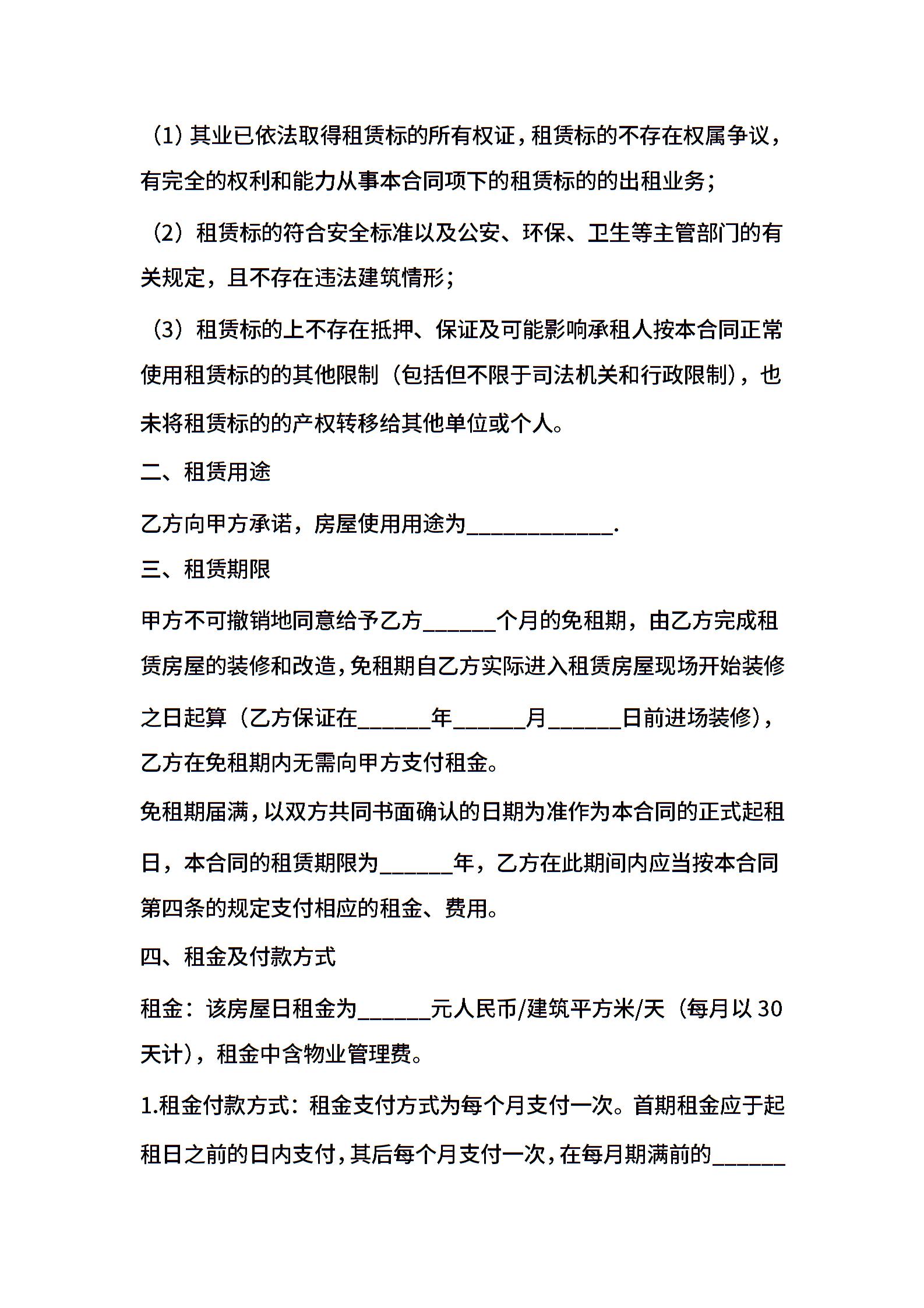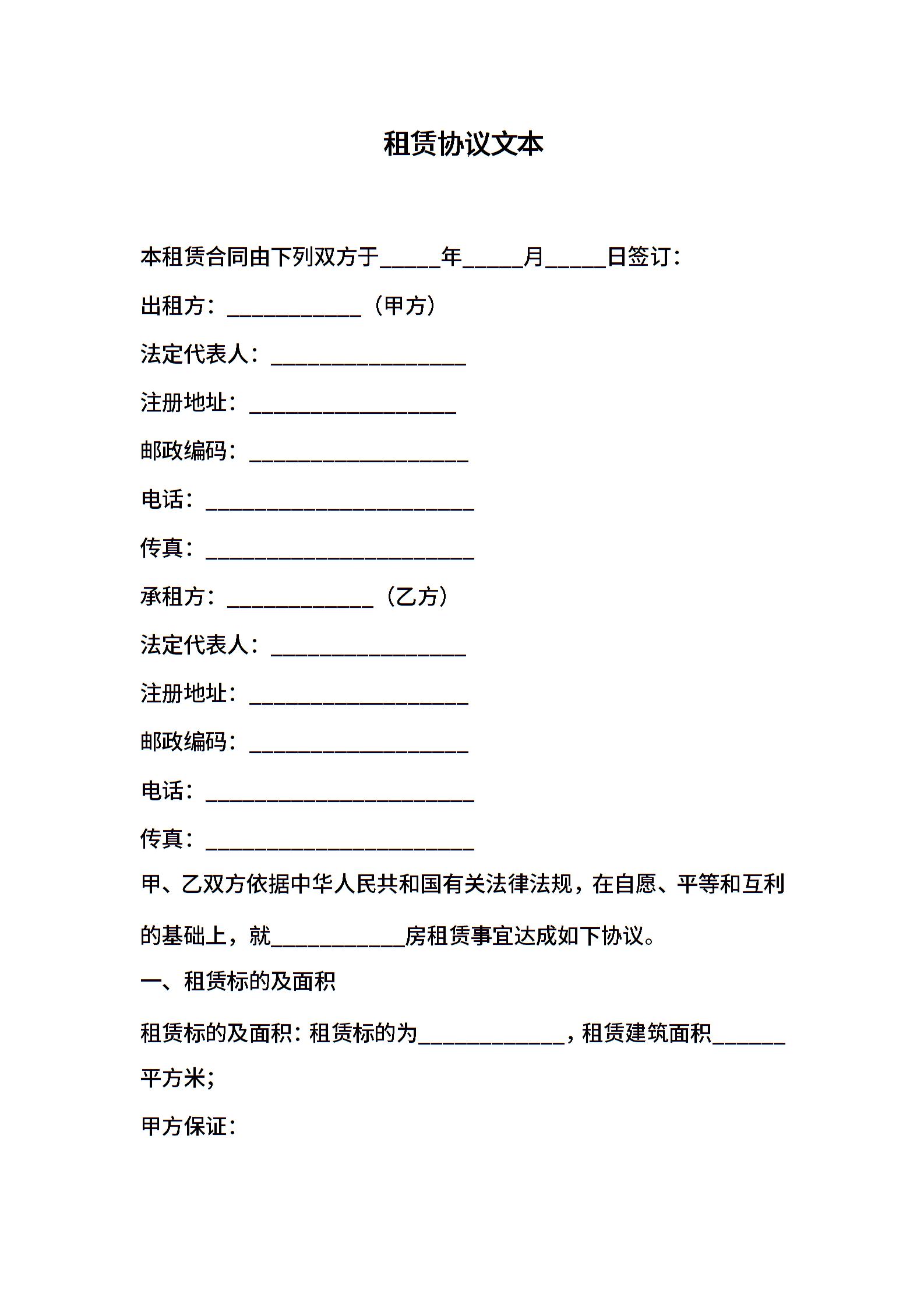 租赁协议文本