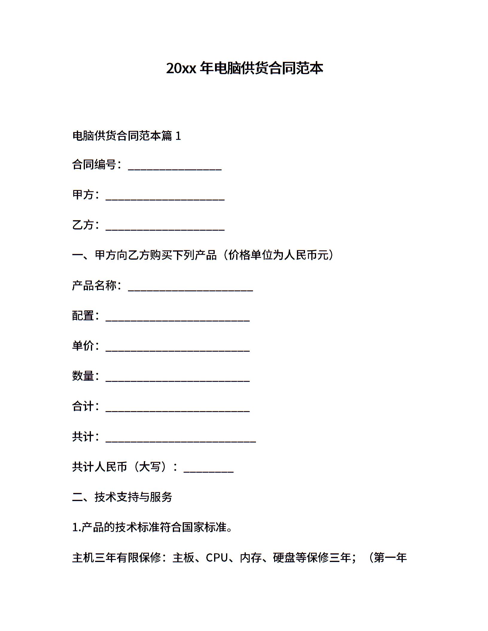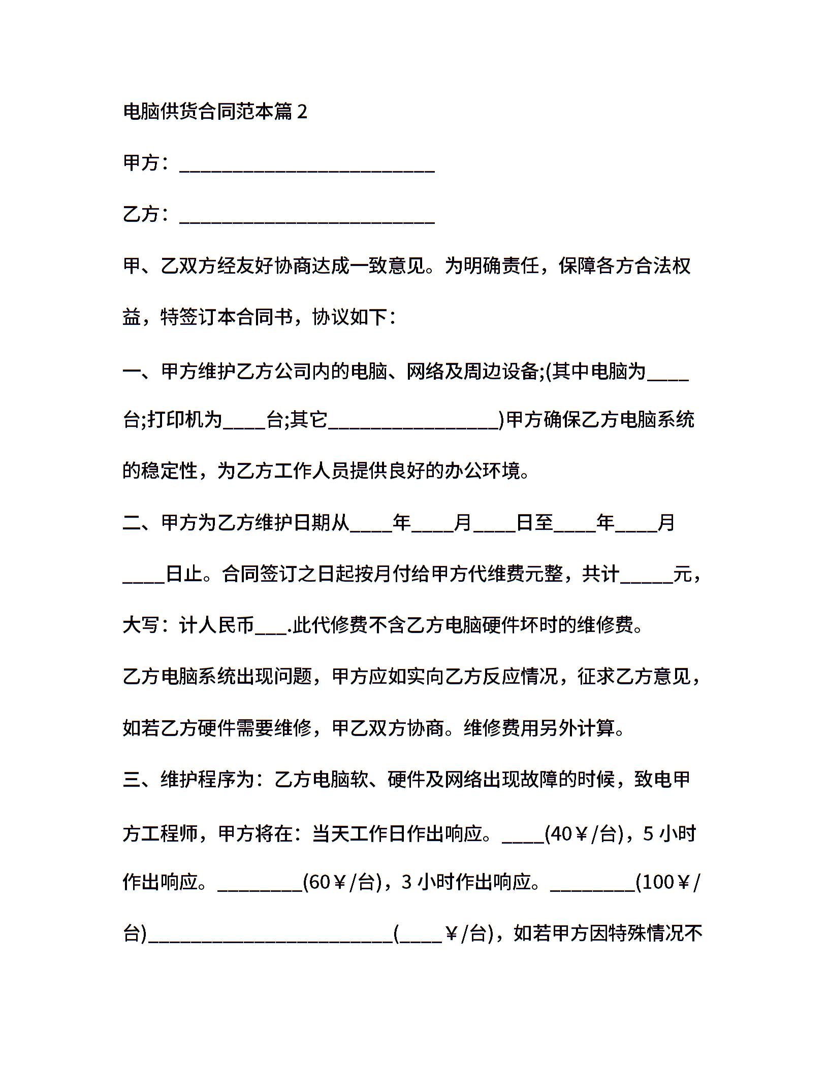 20xx年电脑供货合同范本 (2)