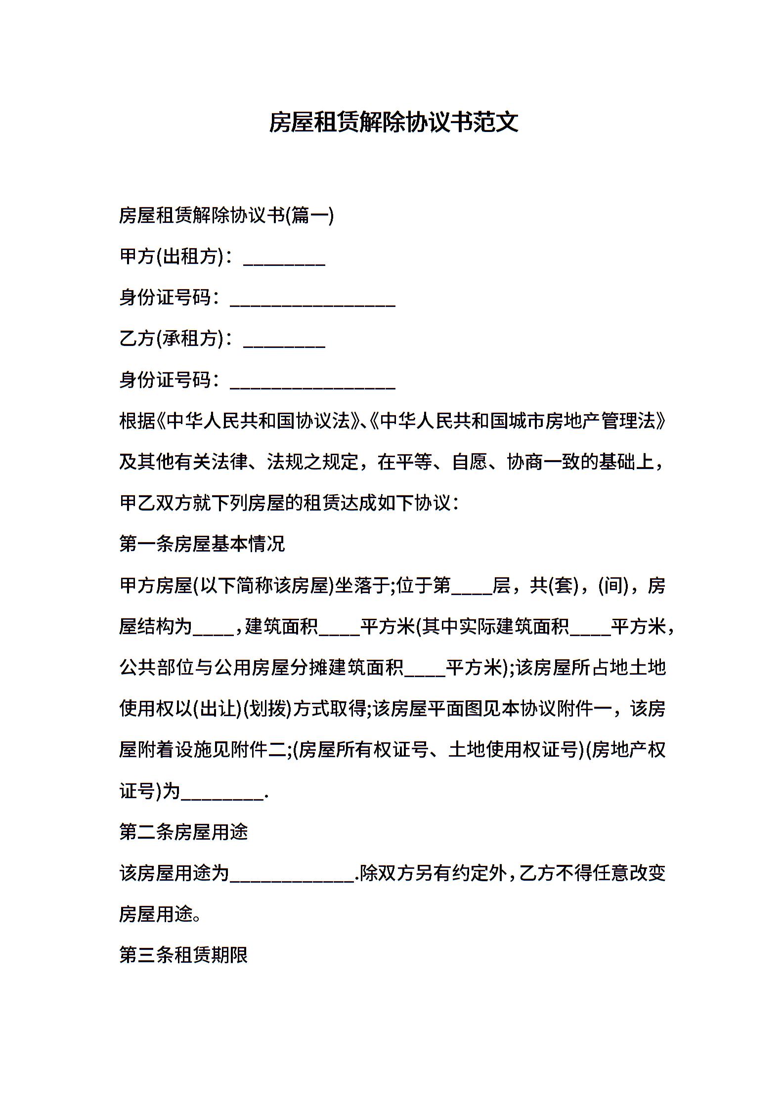 房屋租赁解除协议书