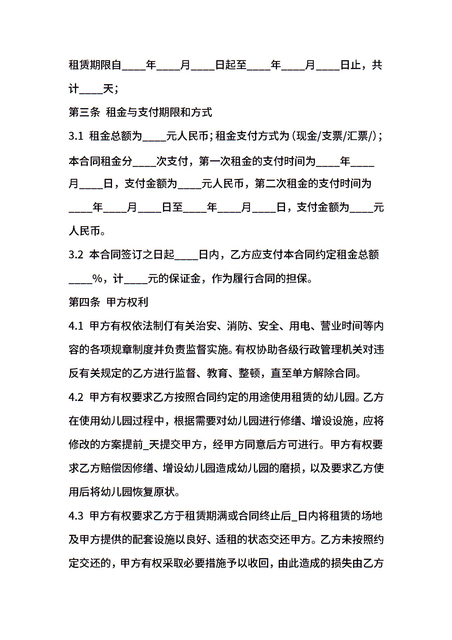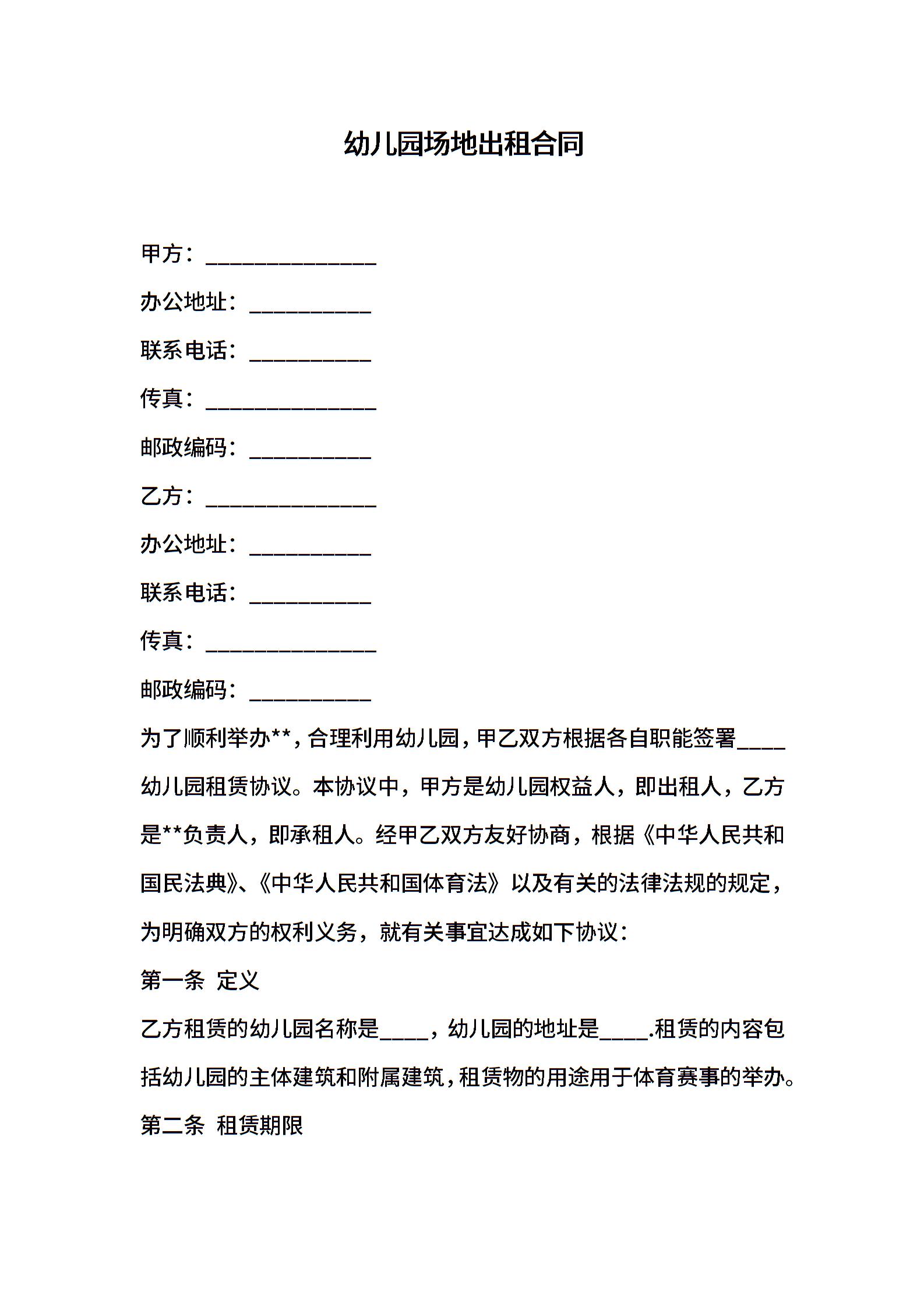 幼儿园场地出租合同