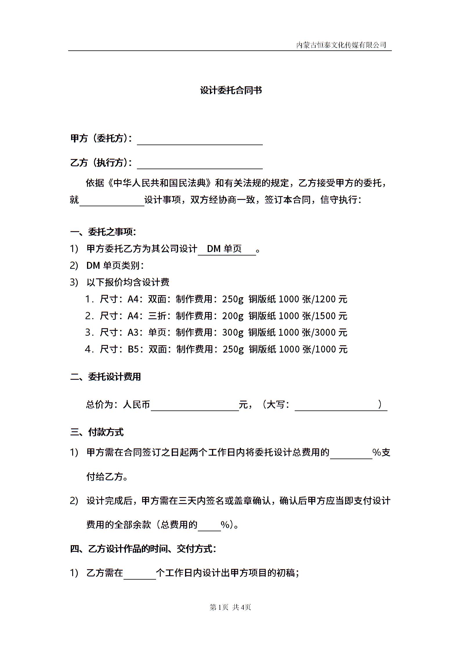 • 分类 设计合同