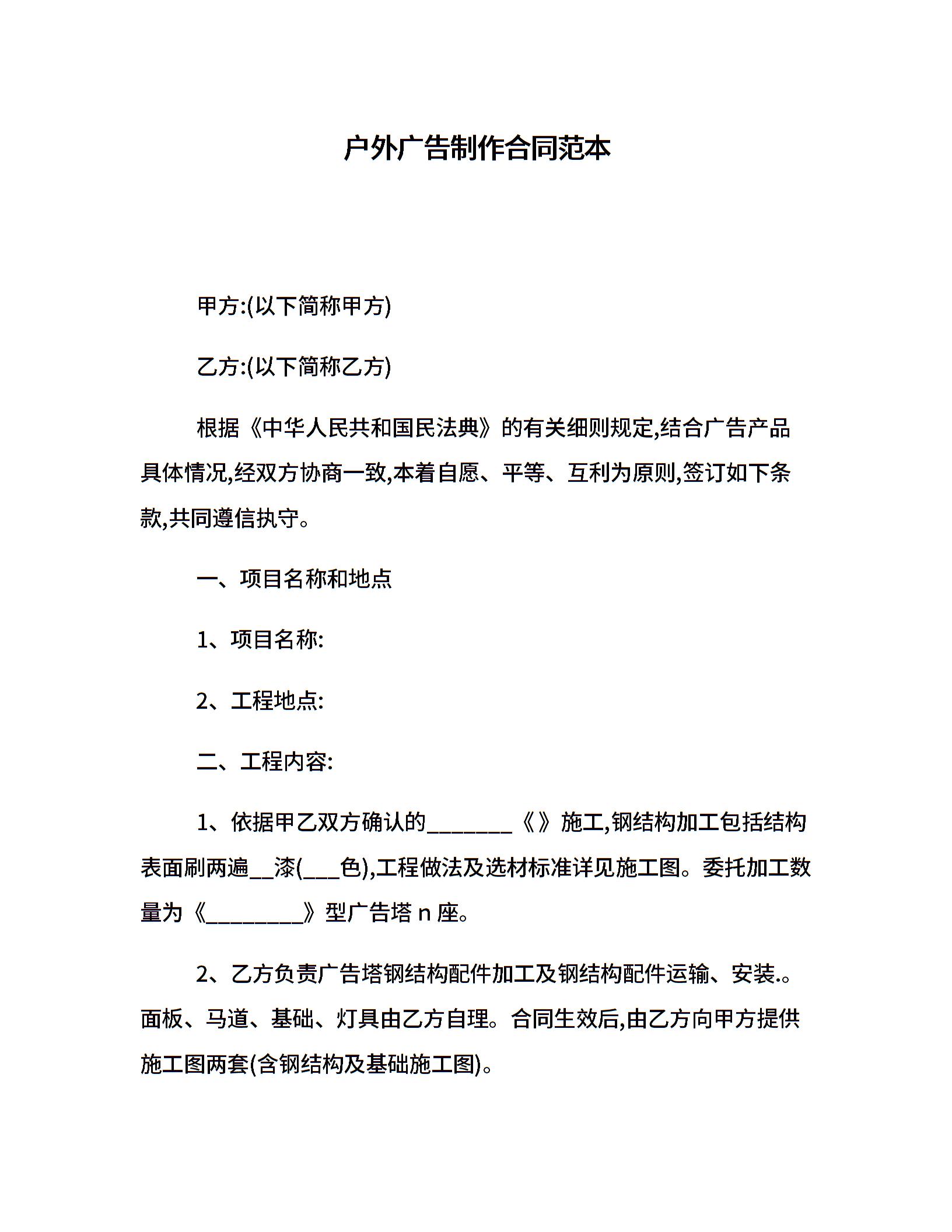 户外广告制作合同范本