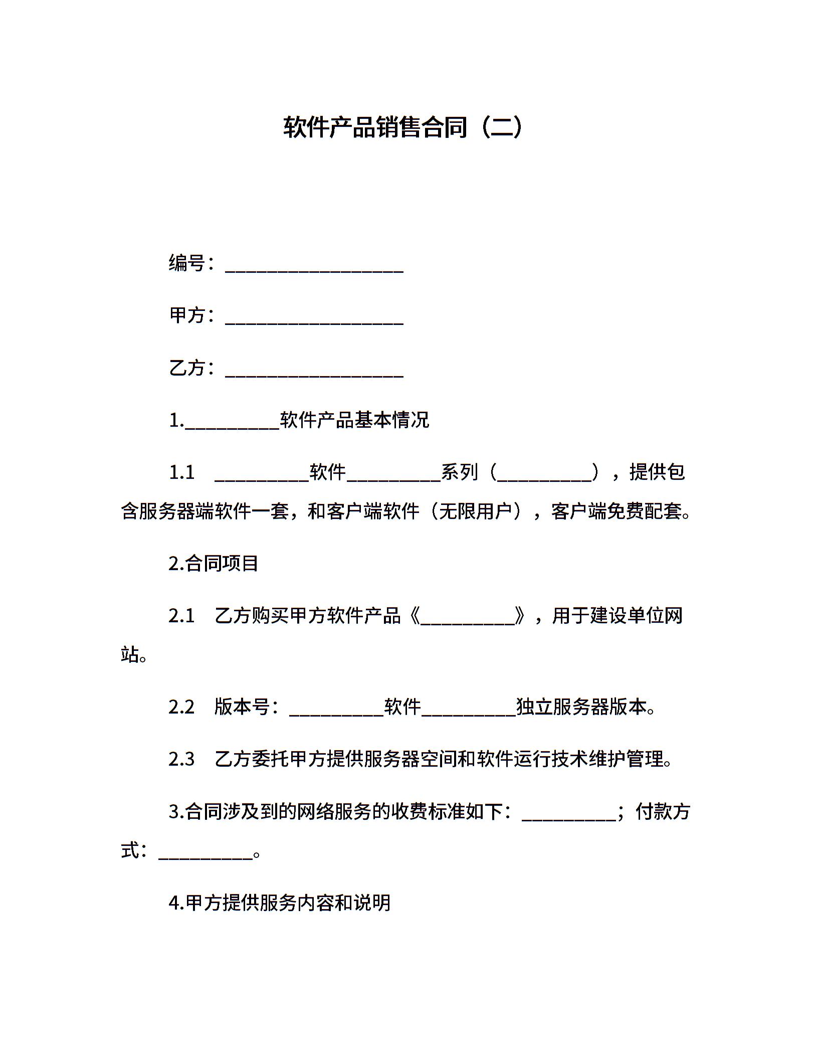软件产品销售合同(二)