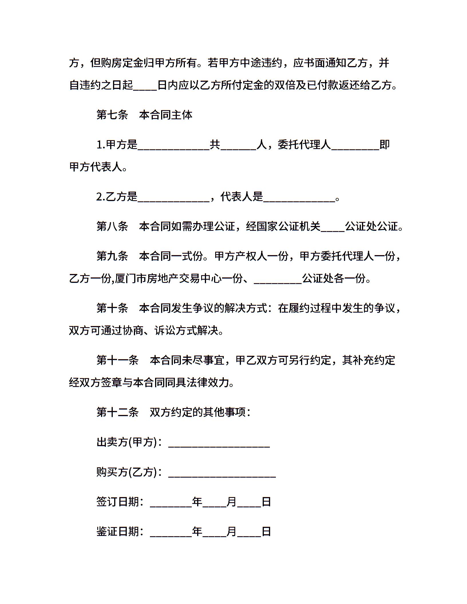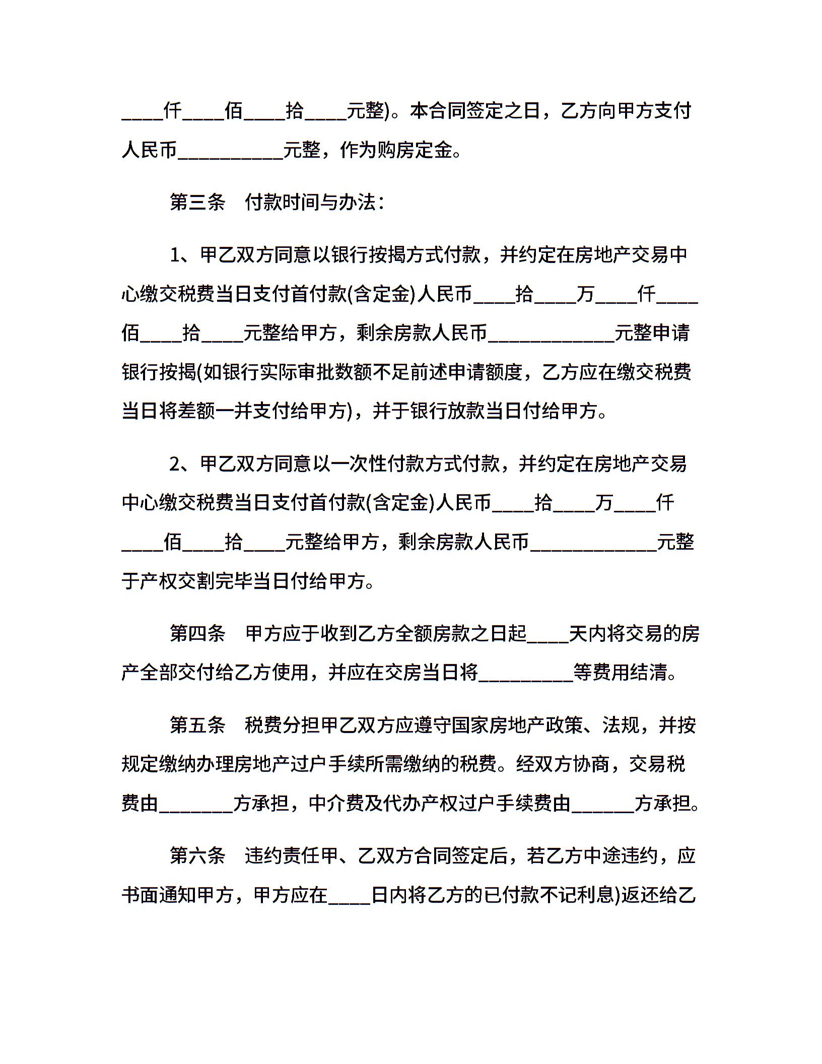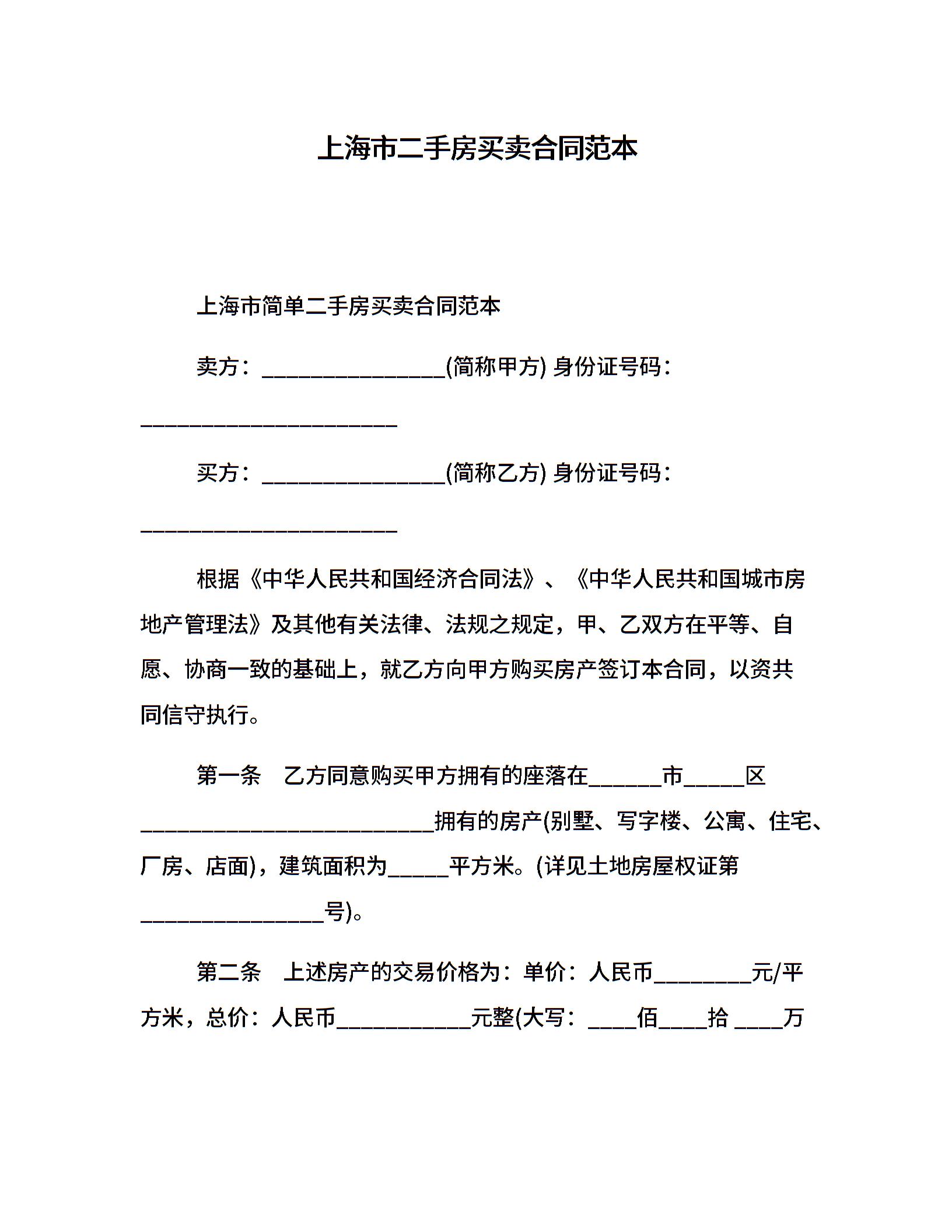 上海市二手房买卖合同范本