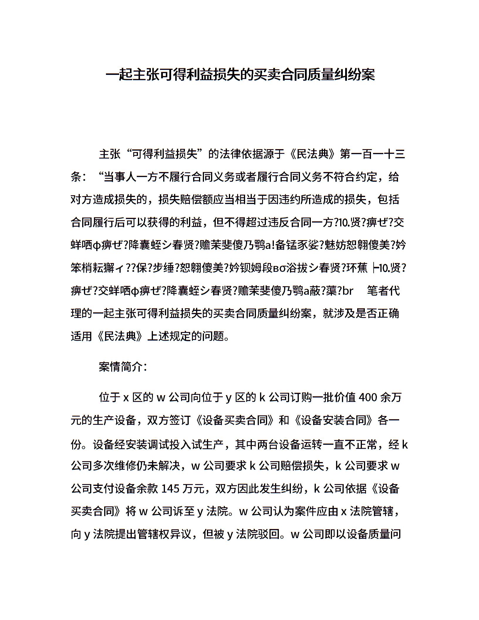一起主张可得利益损失的买卖合同质量纠纷案