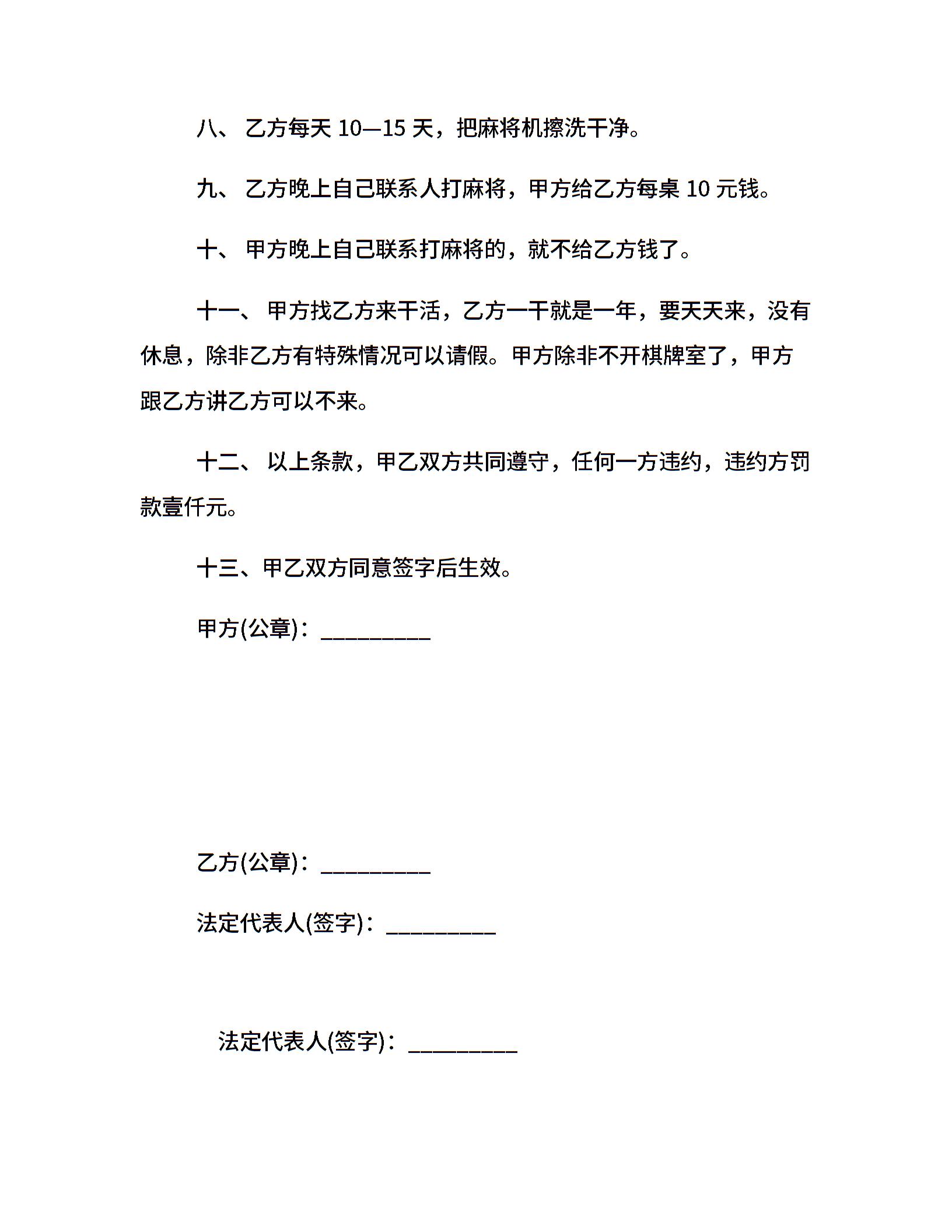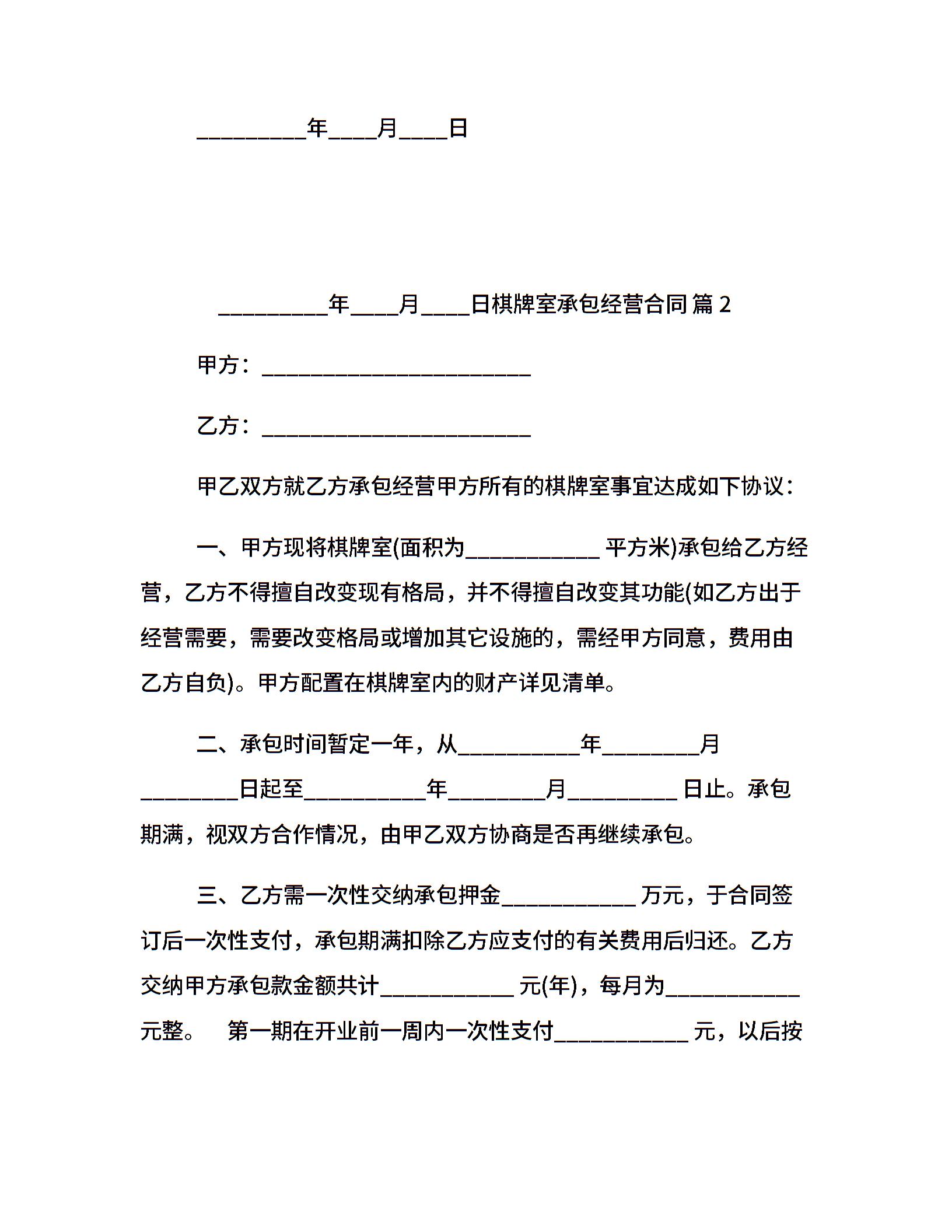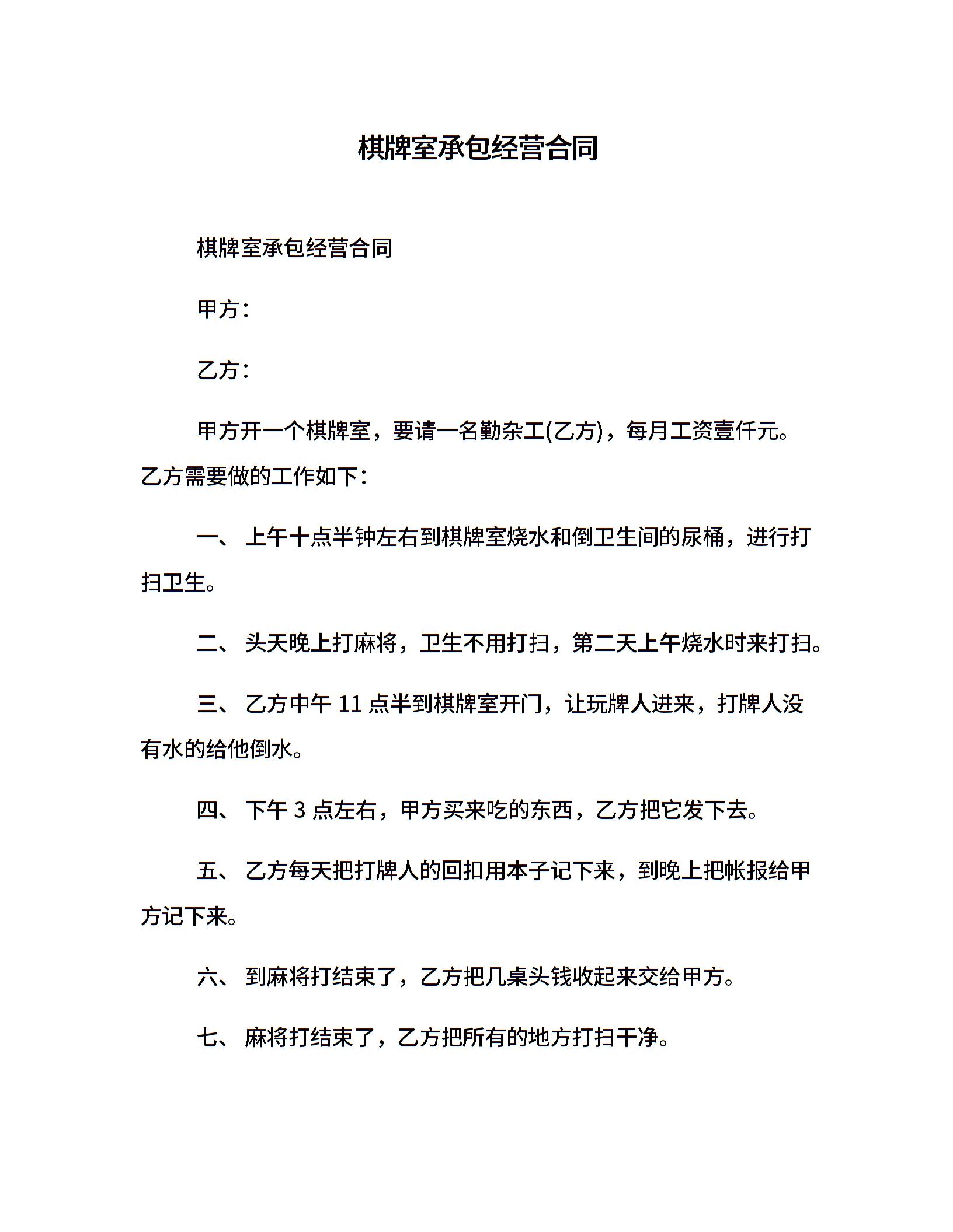 棋牌室承包经营合同