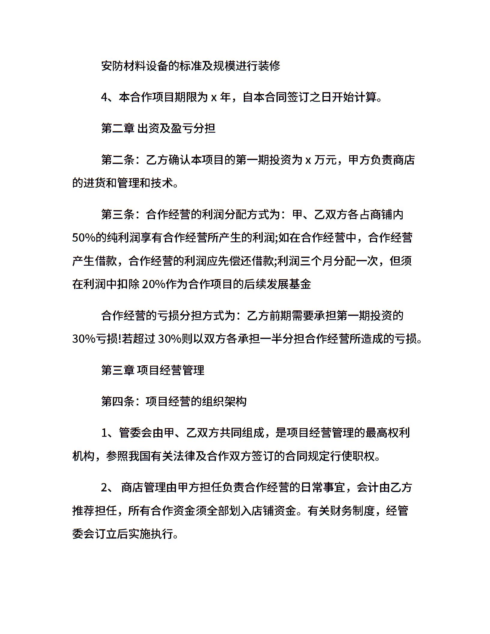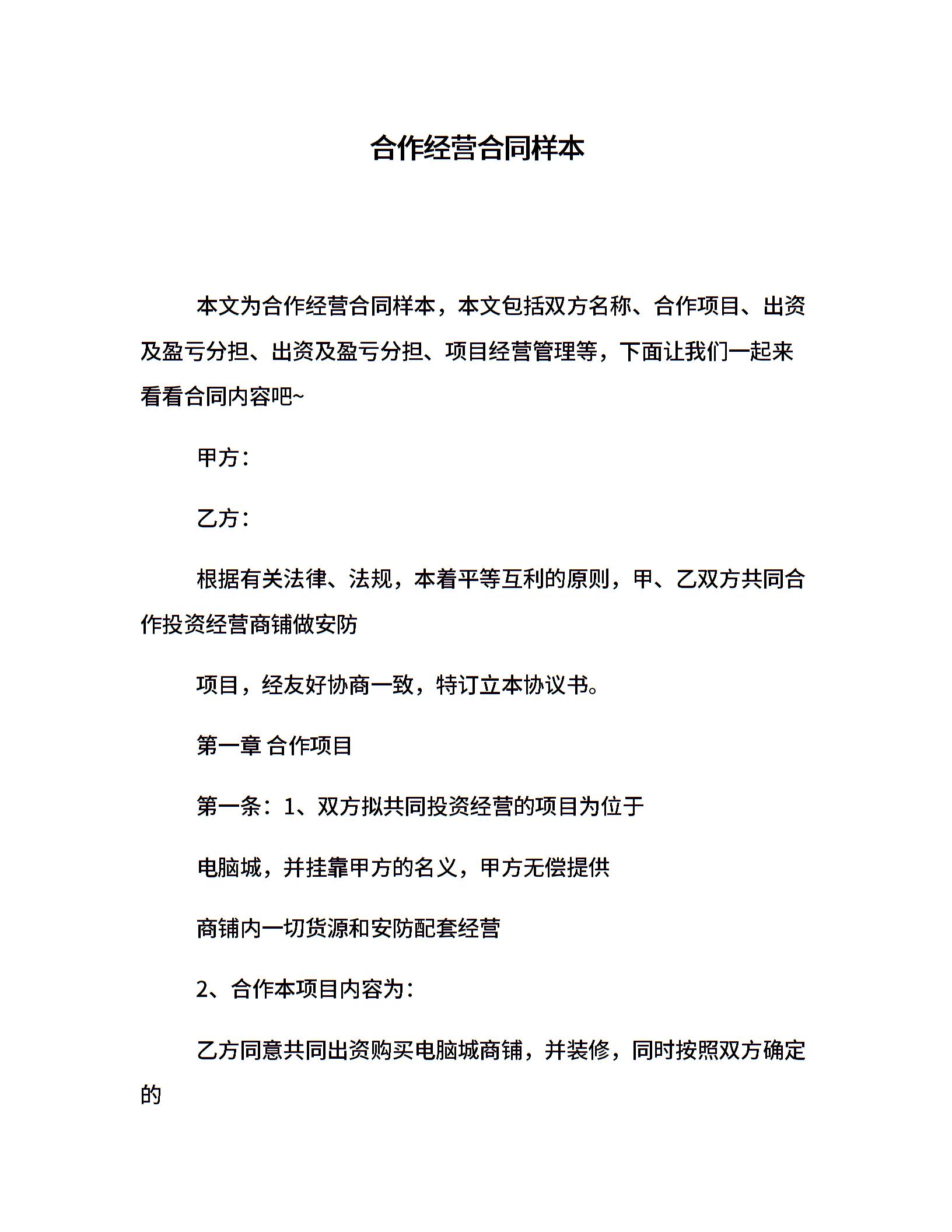 合作经营合同样本