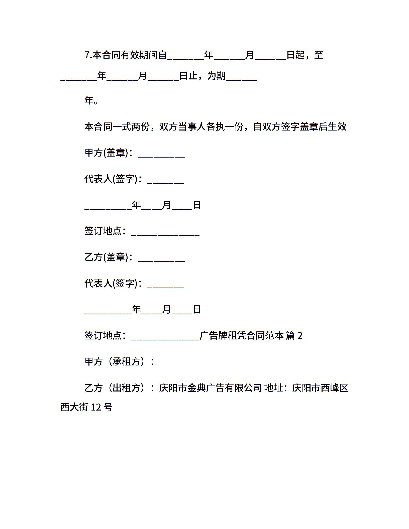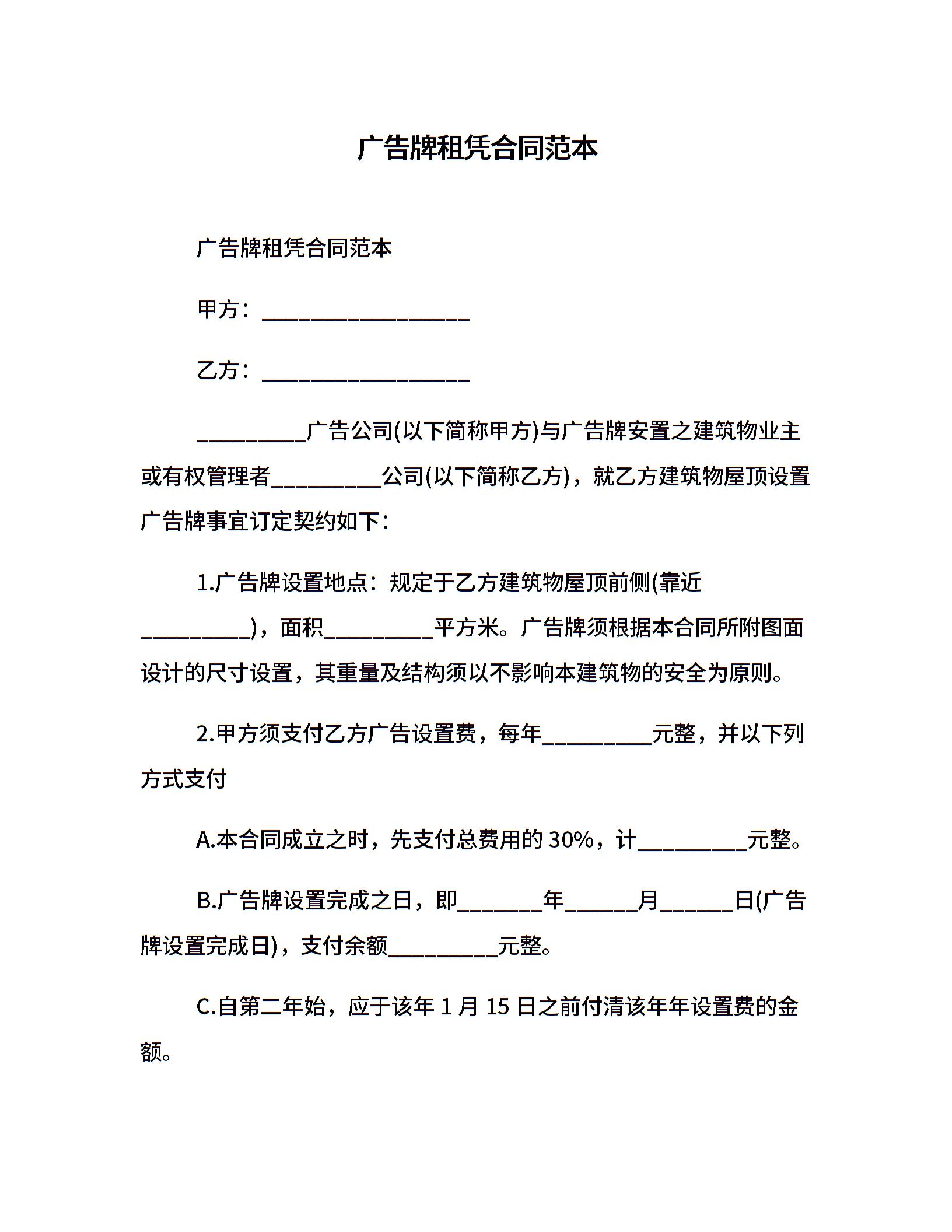 广告牌租凭合同范本