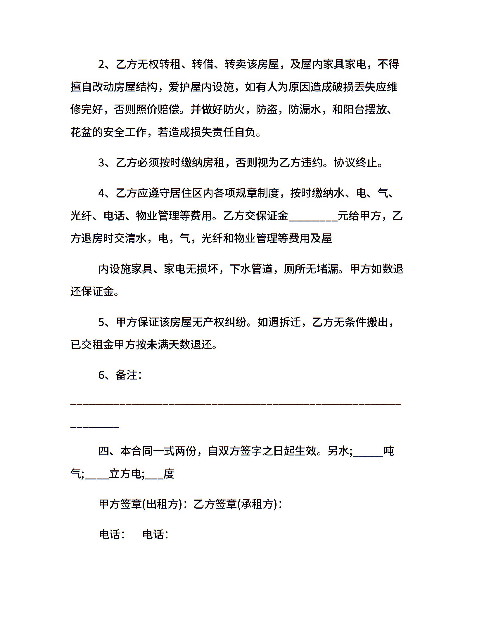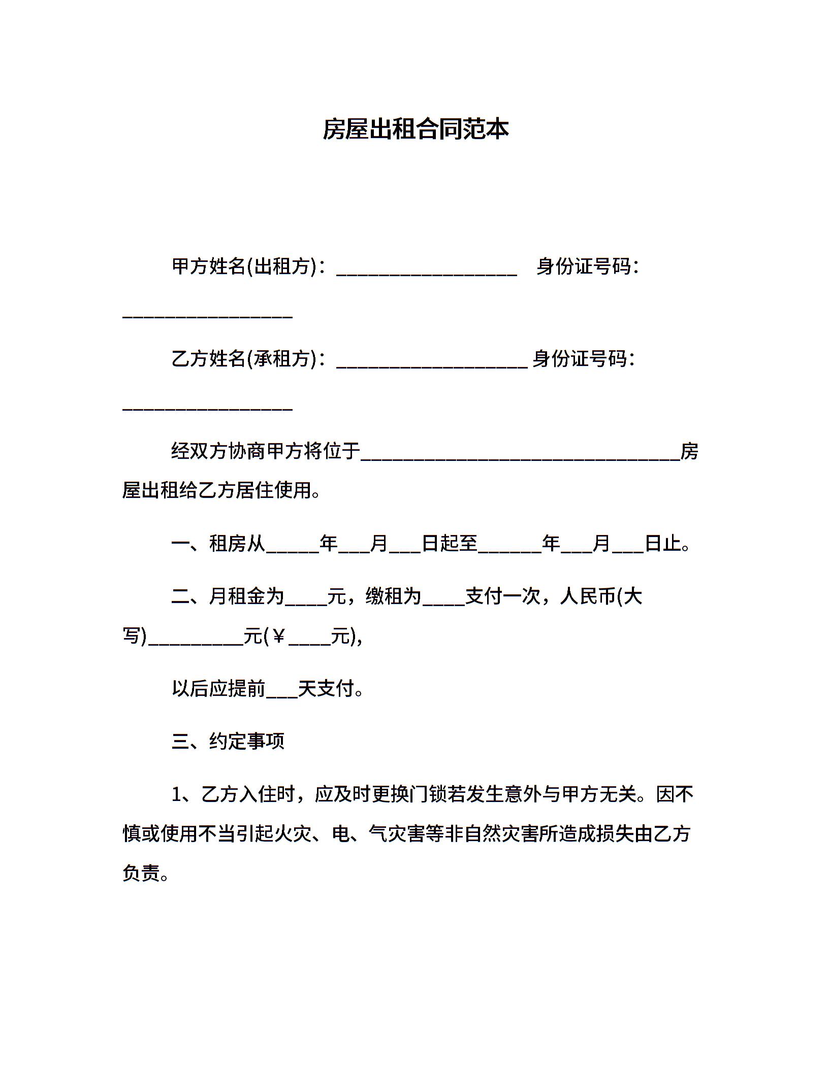 房屋出租合同范本
