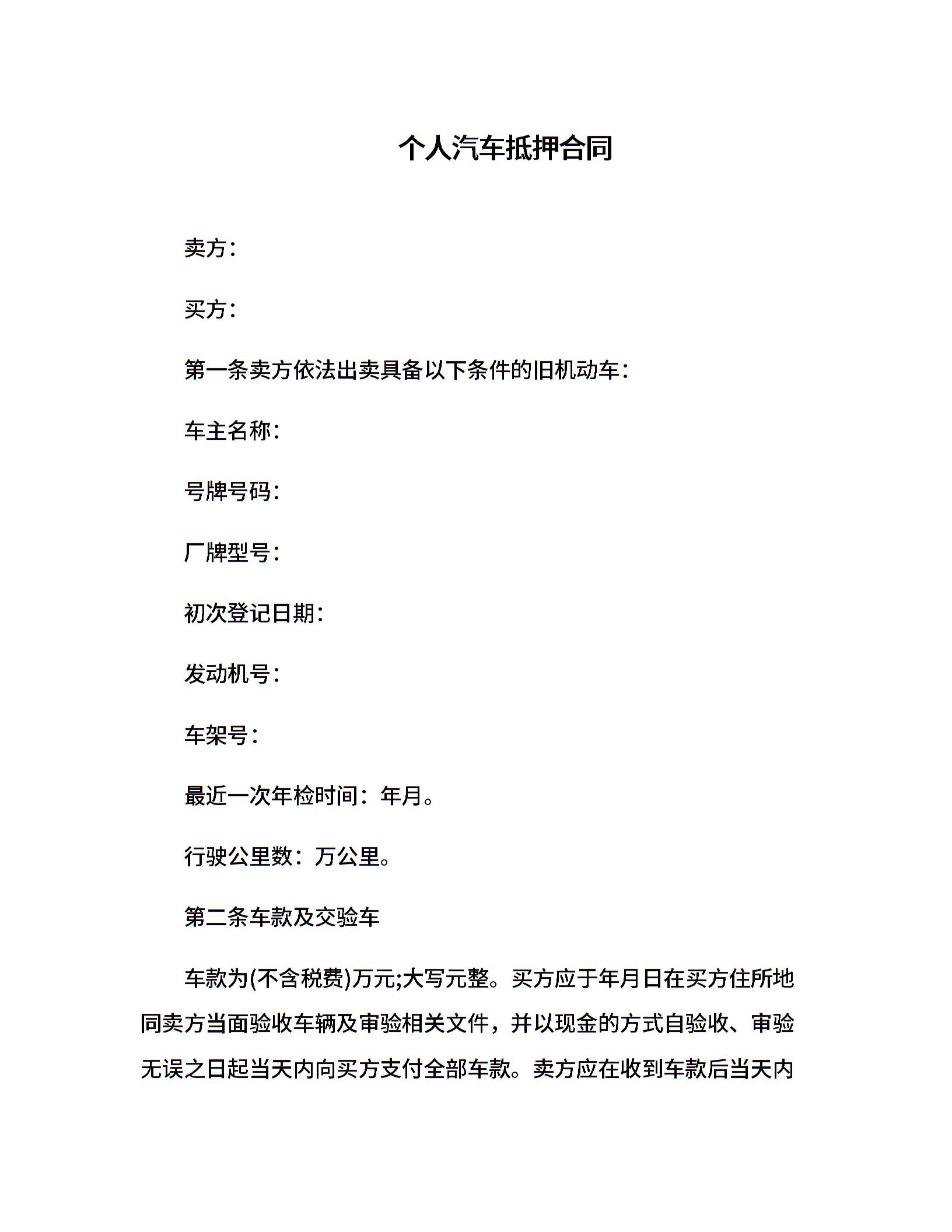 个人汽车抵押合同(1)
