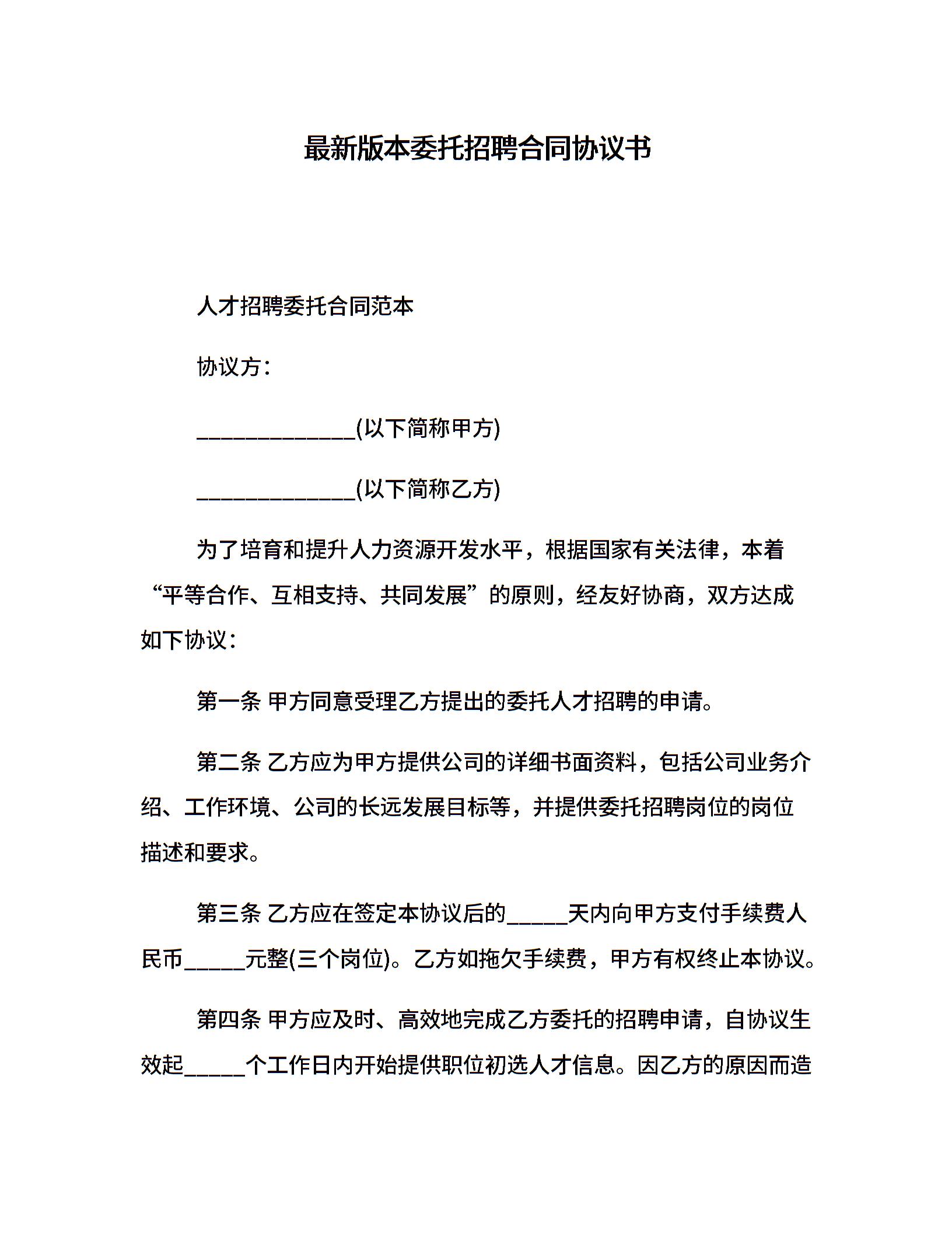 最新版本委托招聘合同协议书