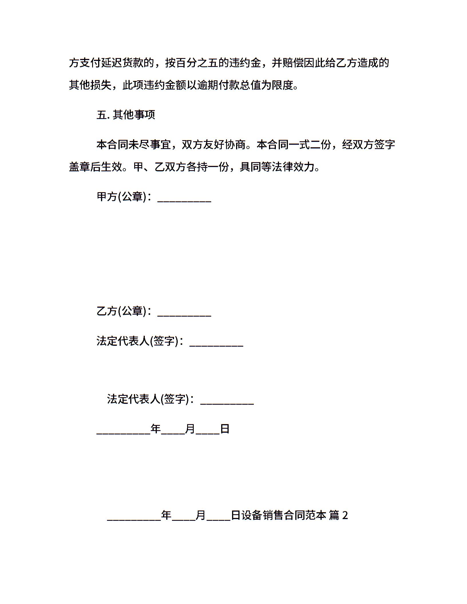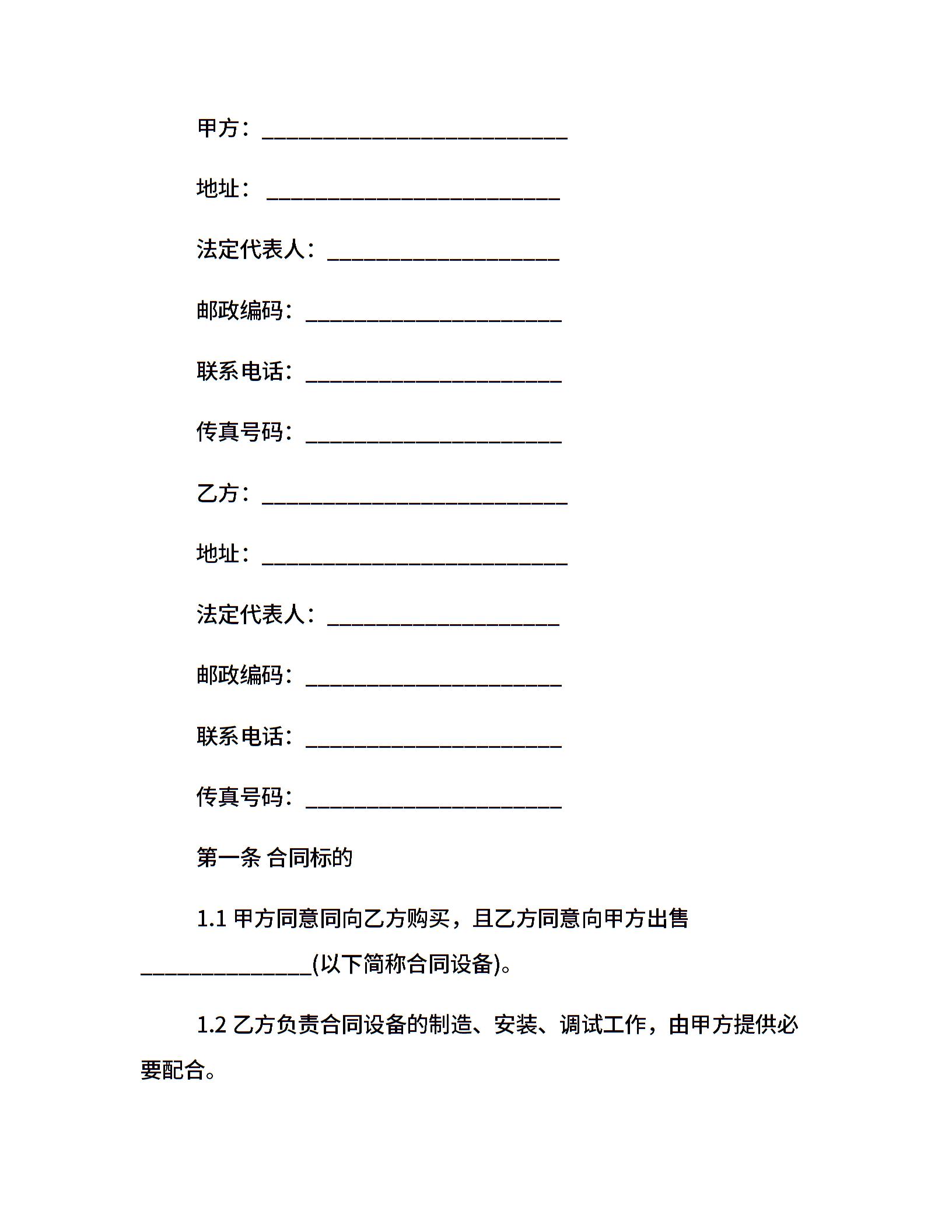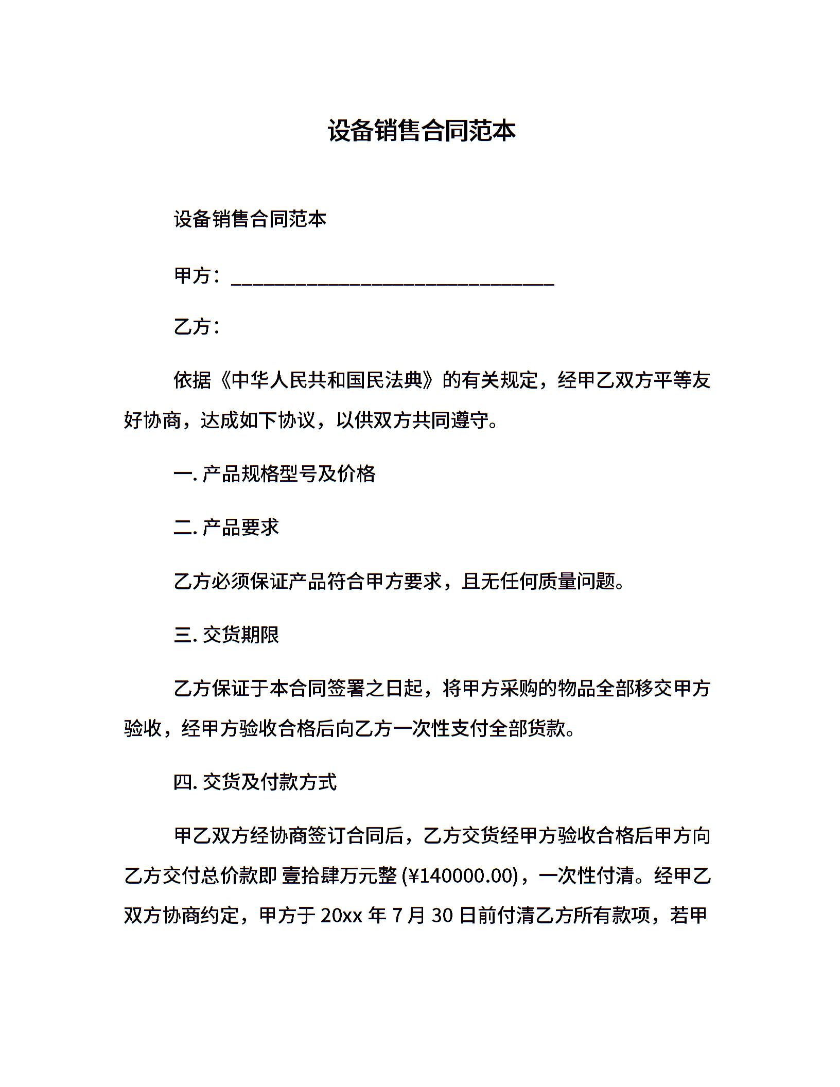 设备销售合同范本