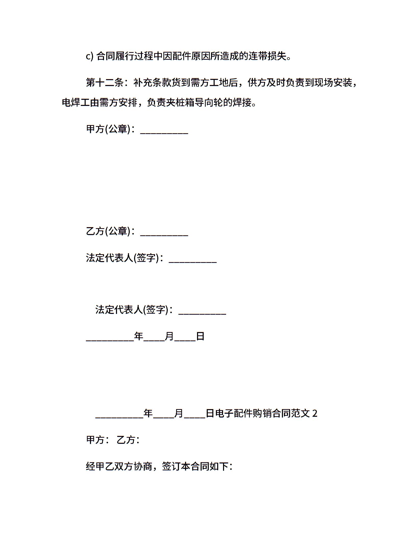 电子配件购销合同样本