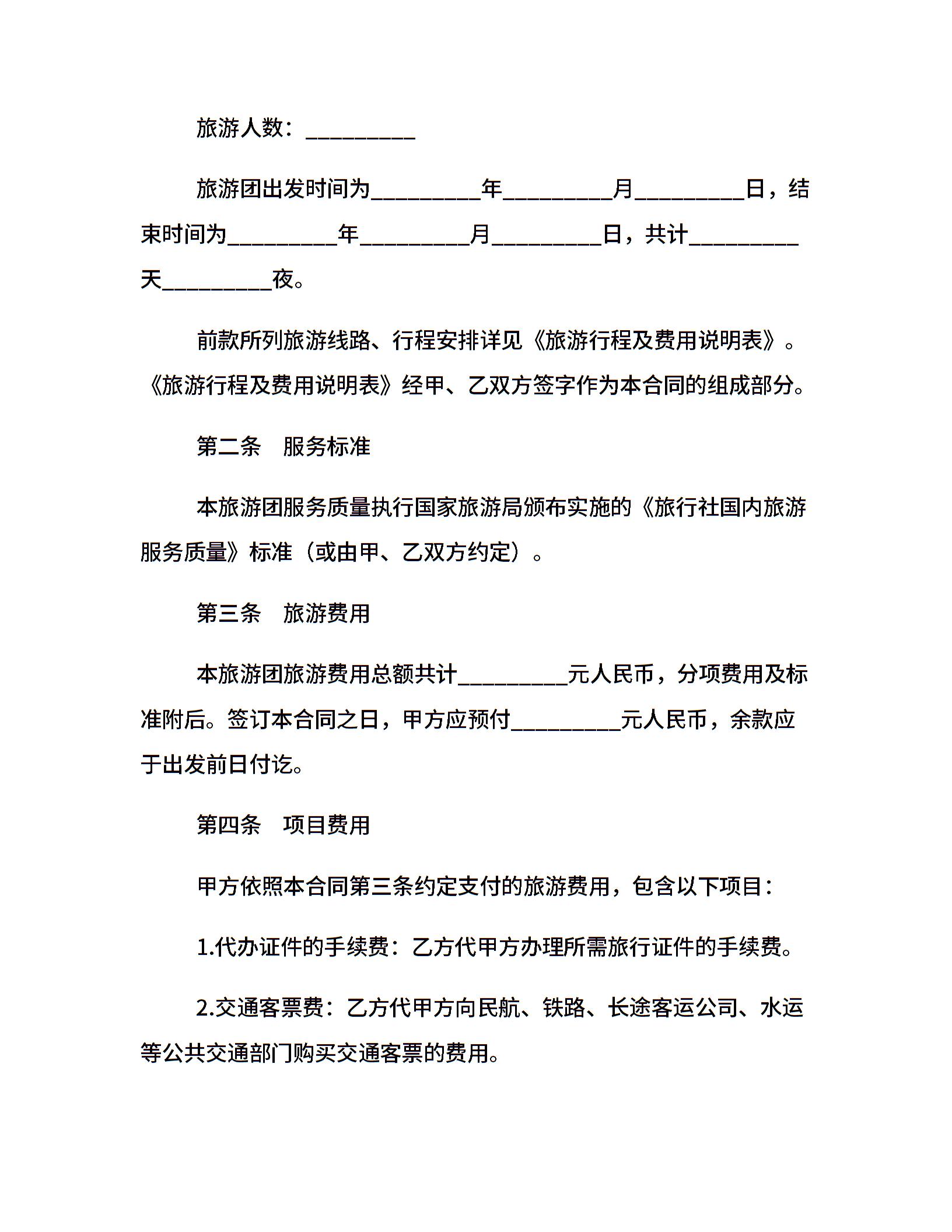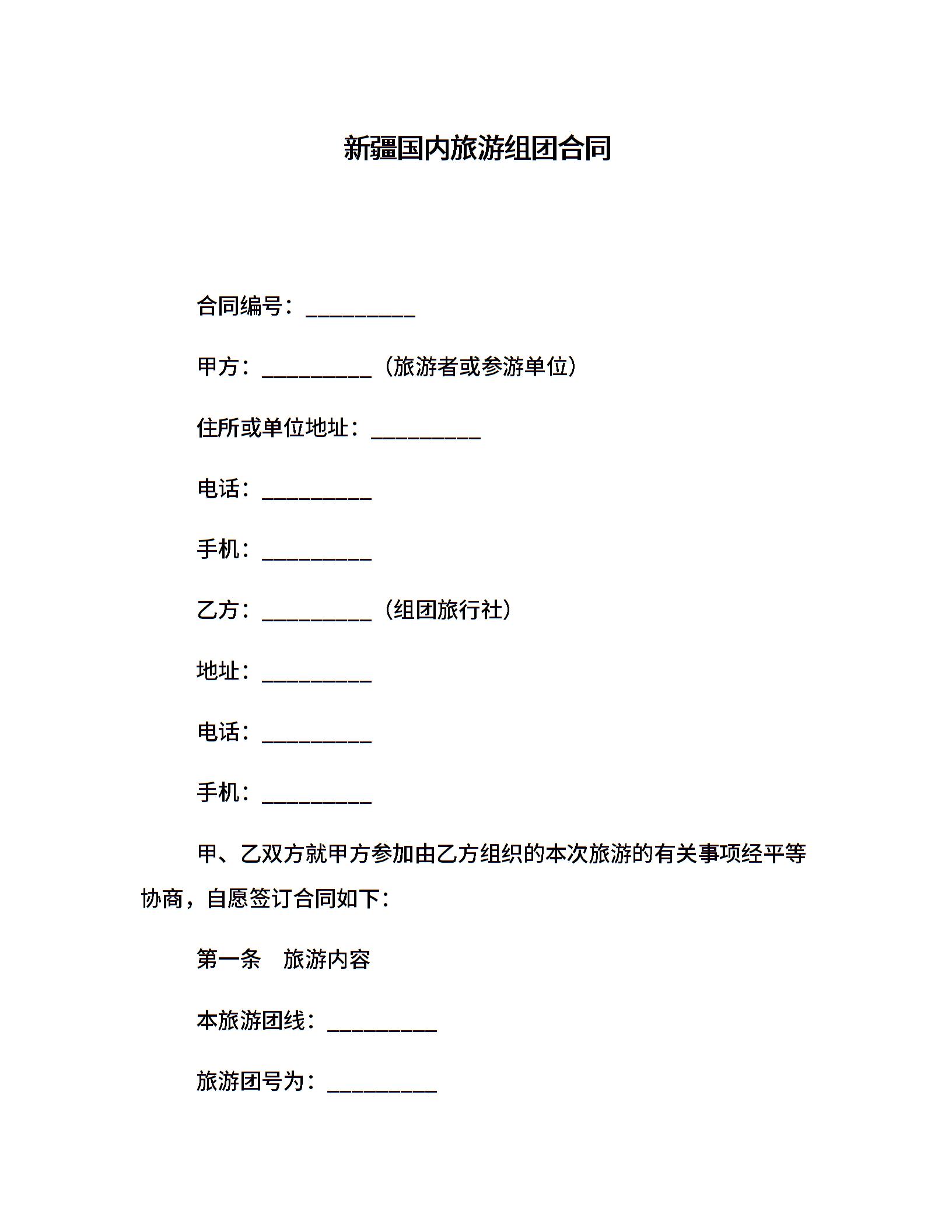 新疆国内旅游组团合同