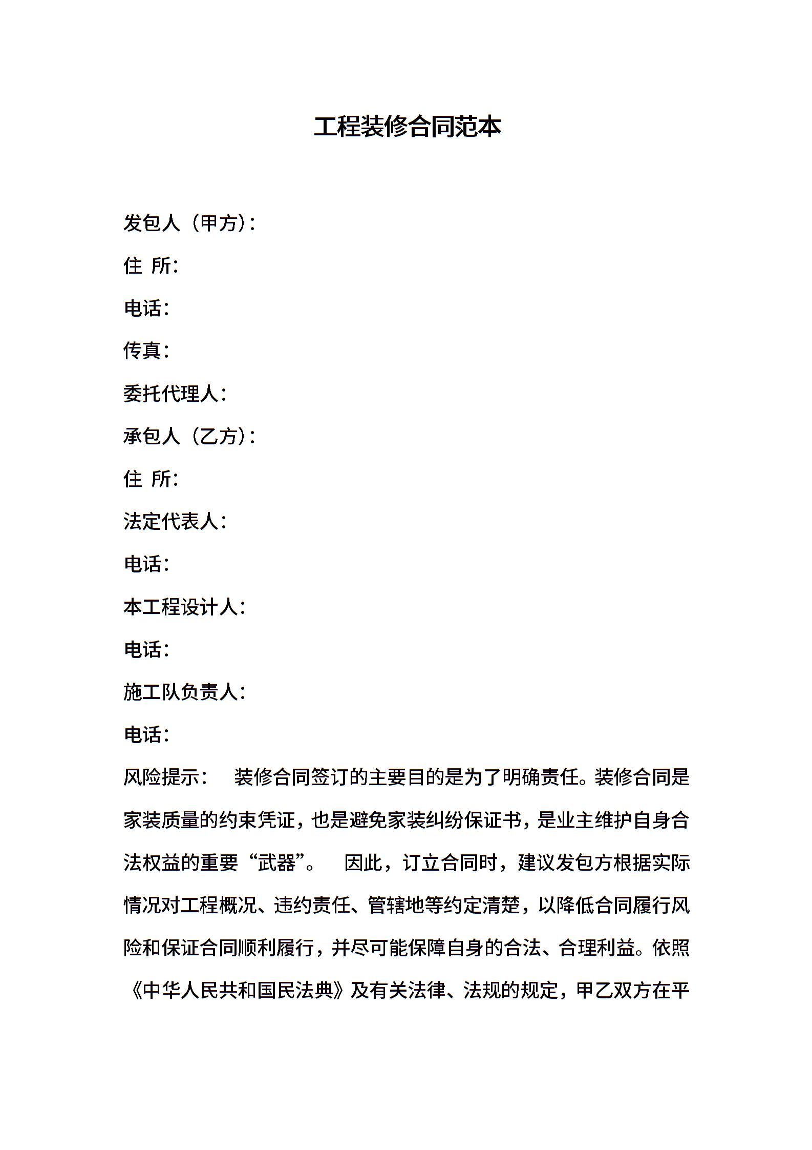 工程装修合同范本