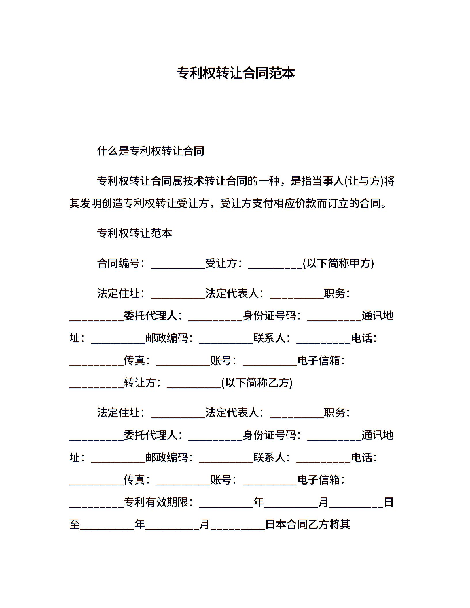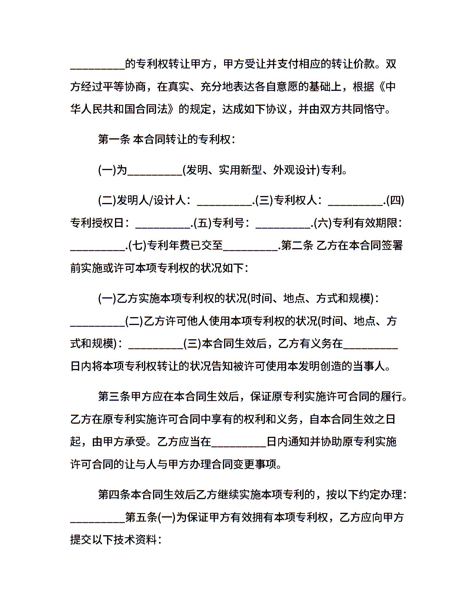专利权转让合同范本