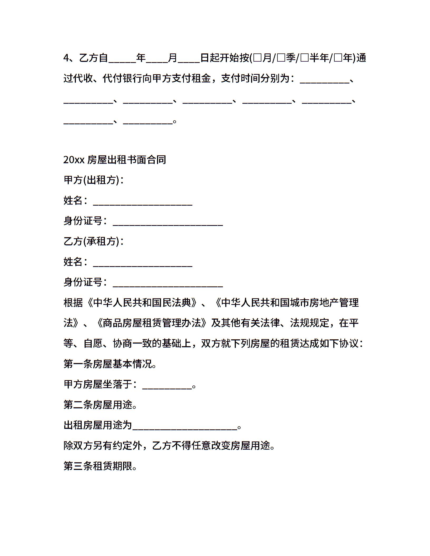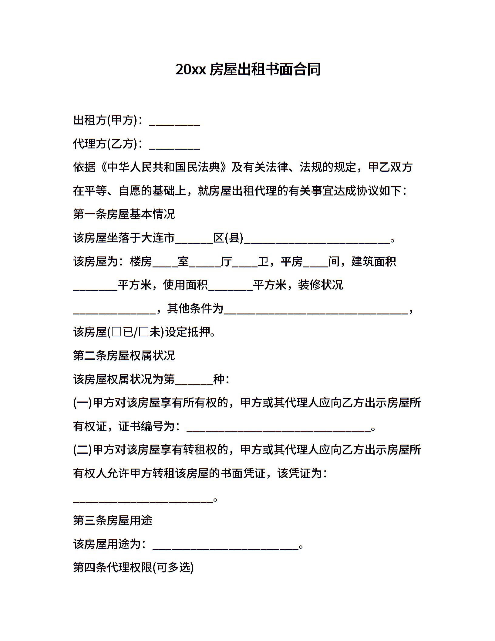 20xx房屋出租书面合同