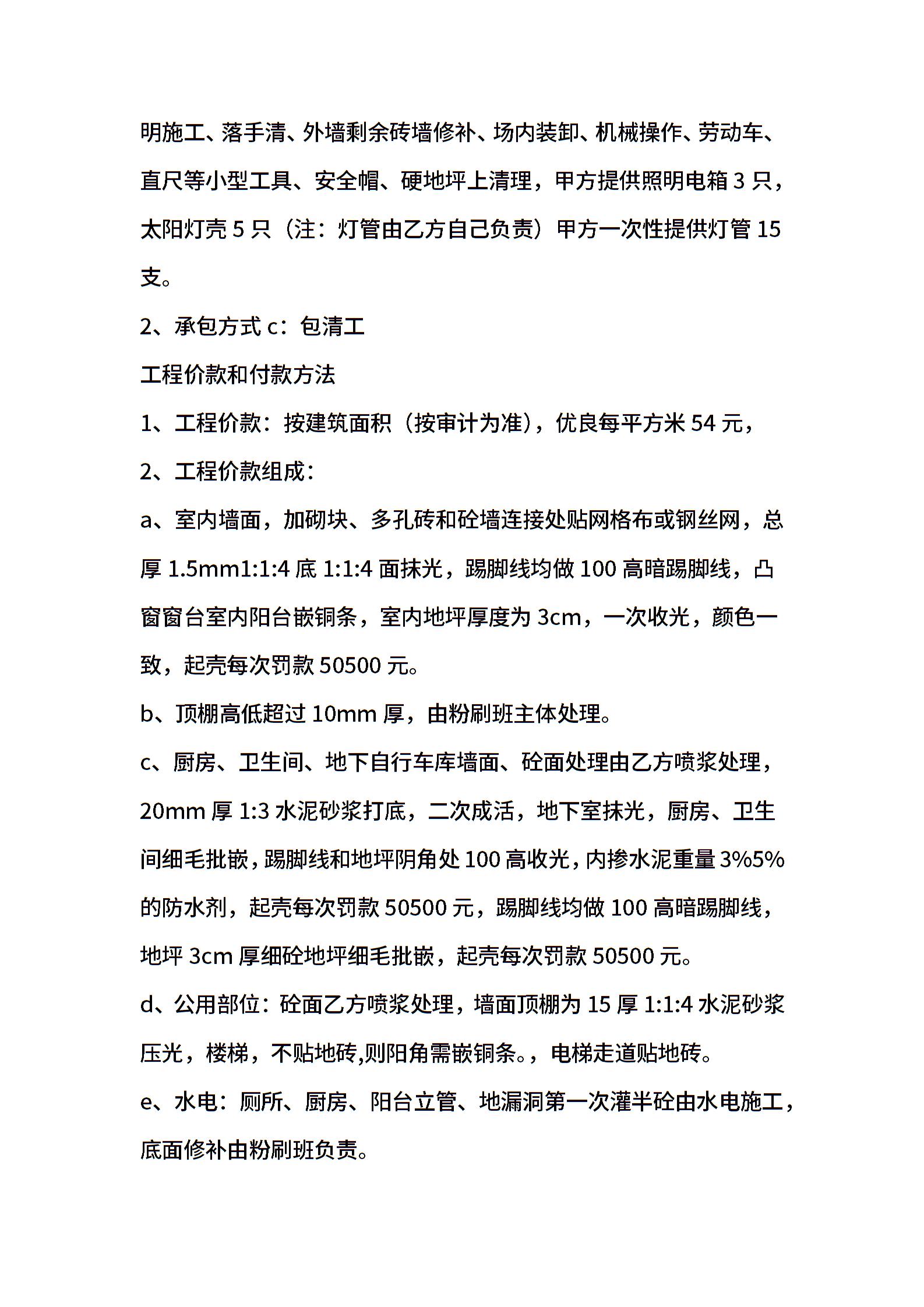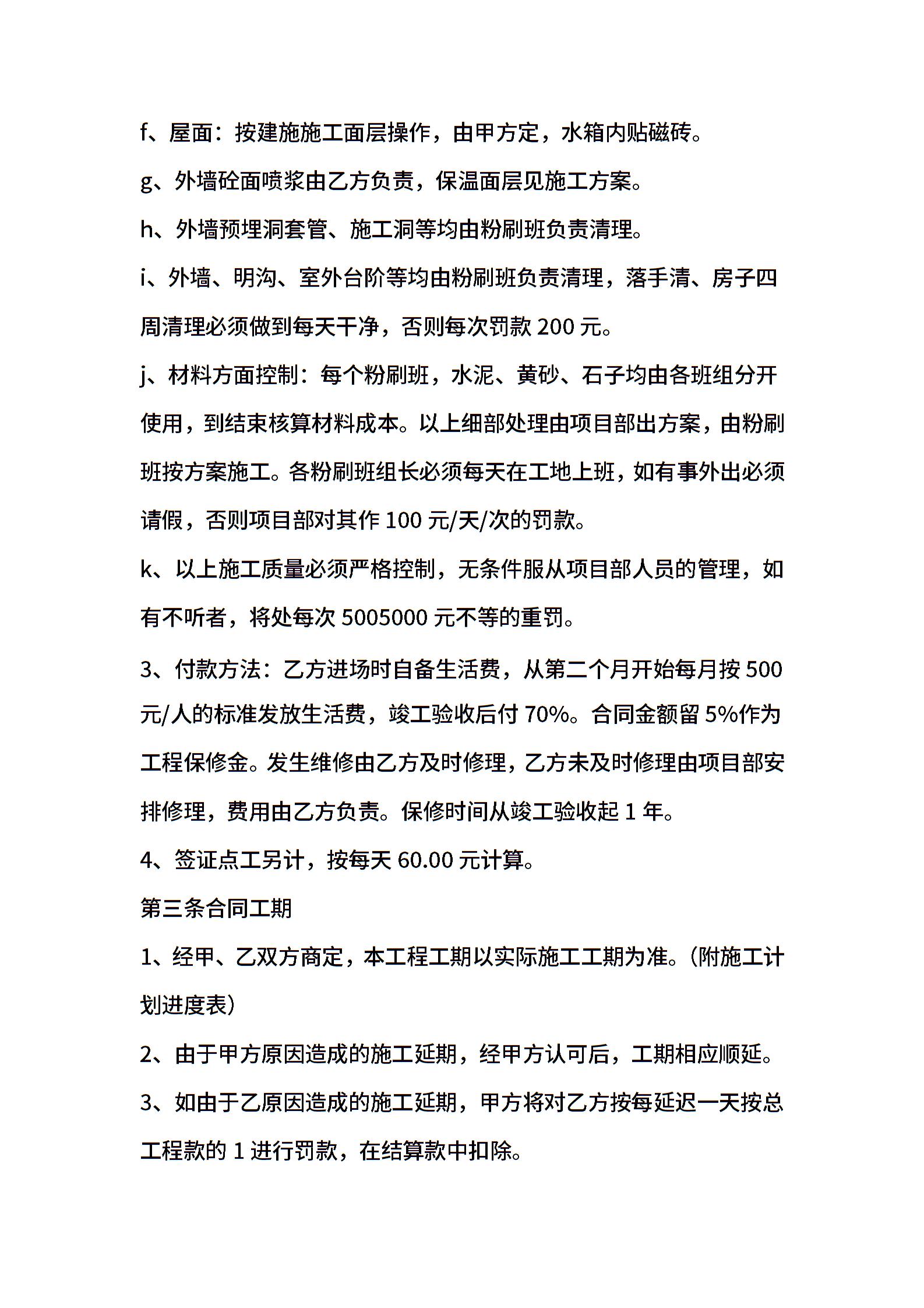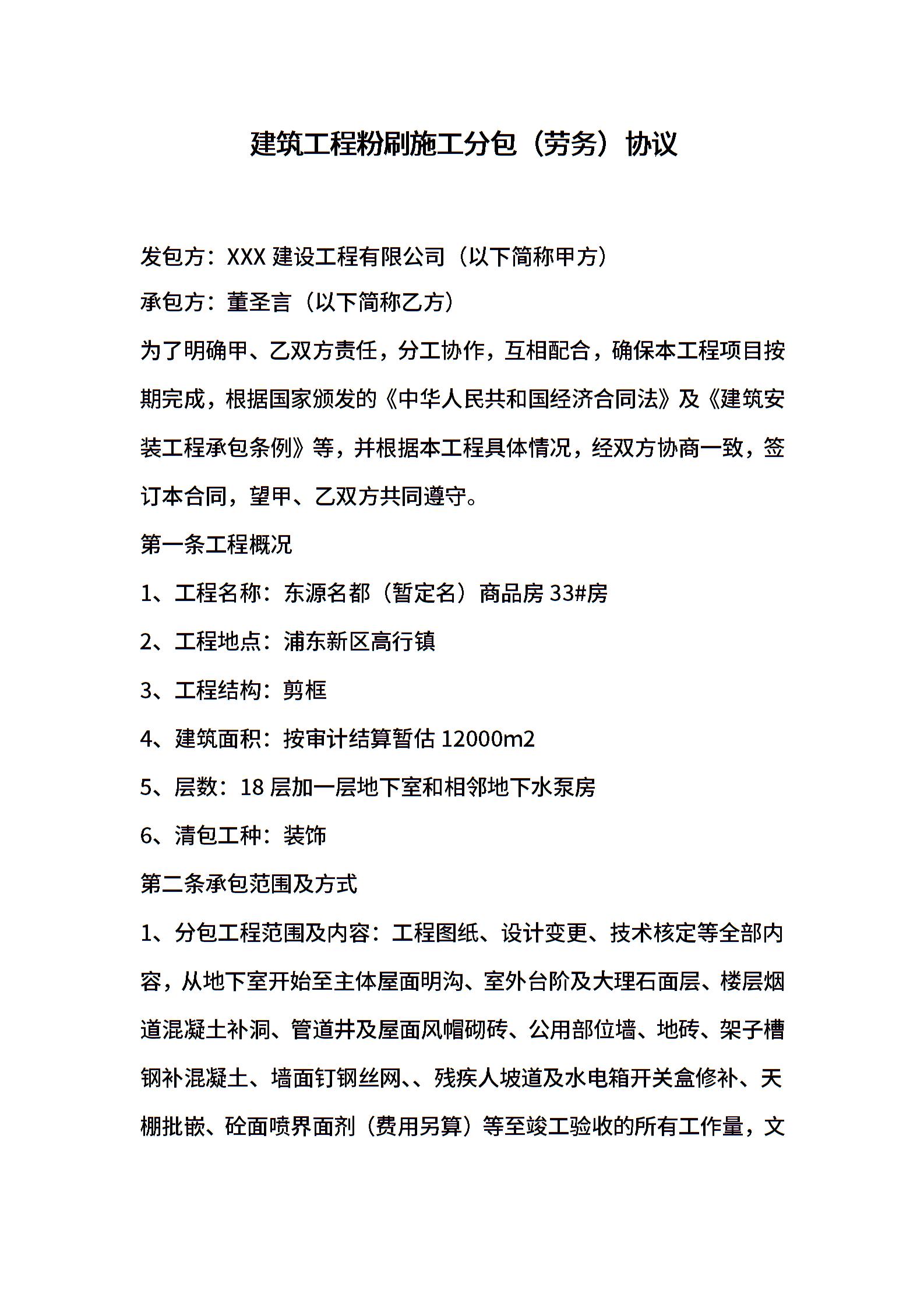 建筑工程粉刷施工分包(劳务)协议