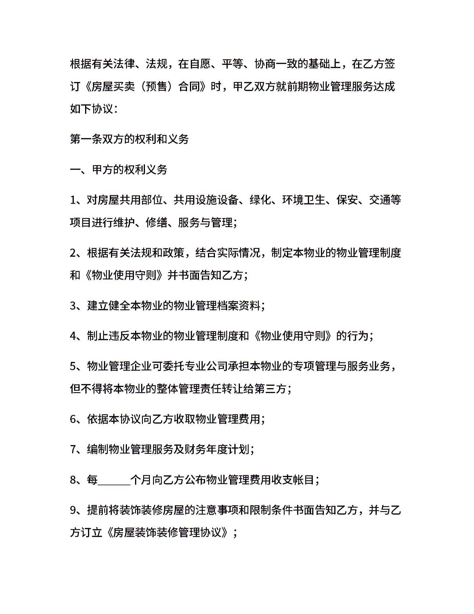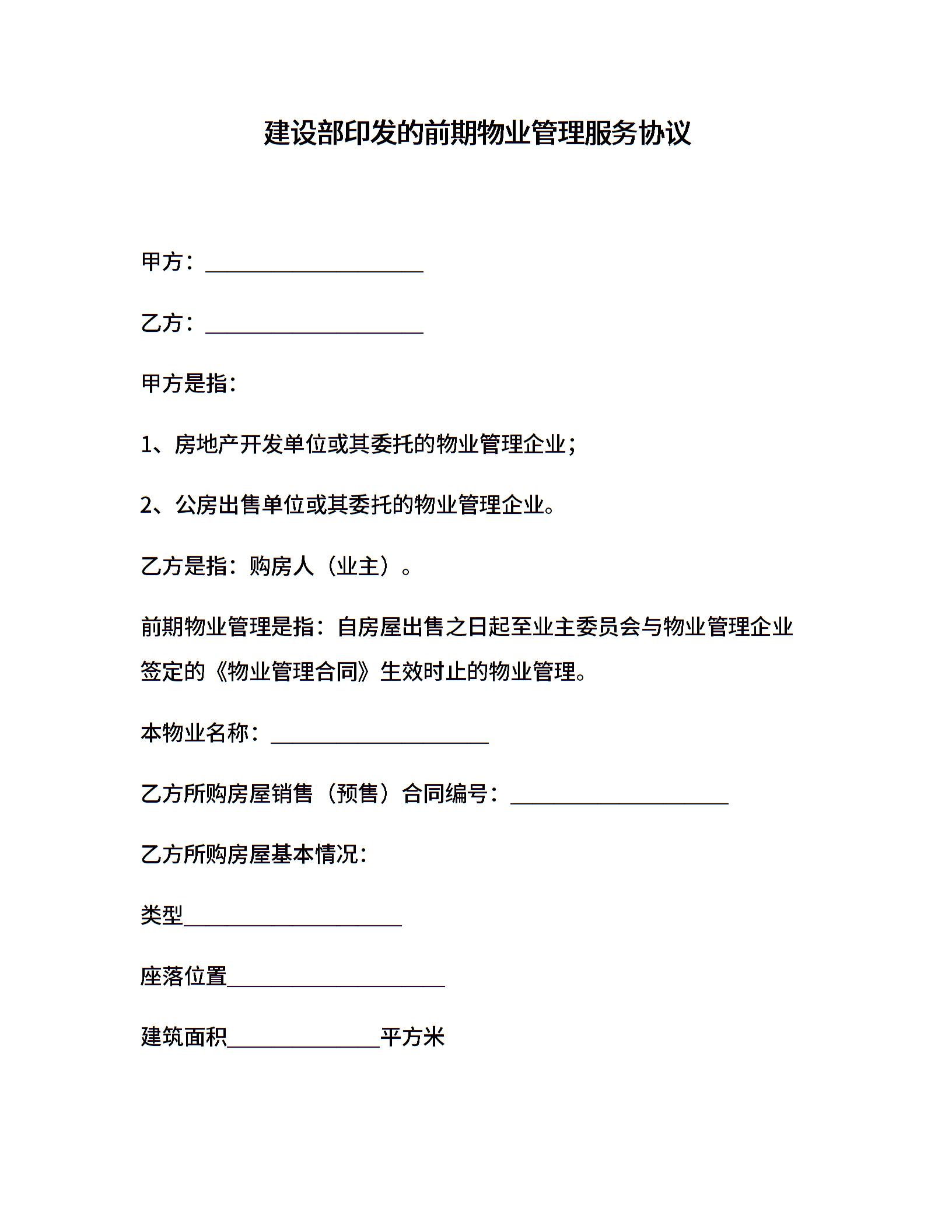 建设部印发的前期物业管理服务协议(示范文本)