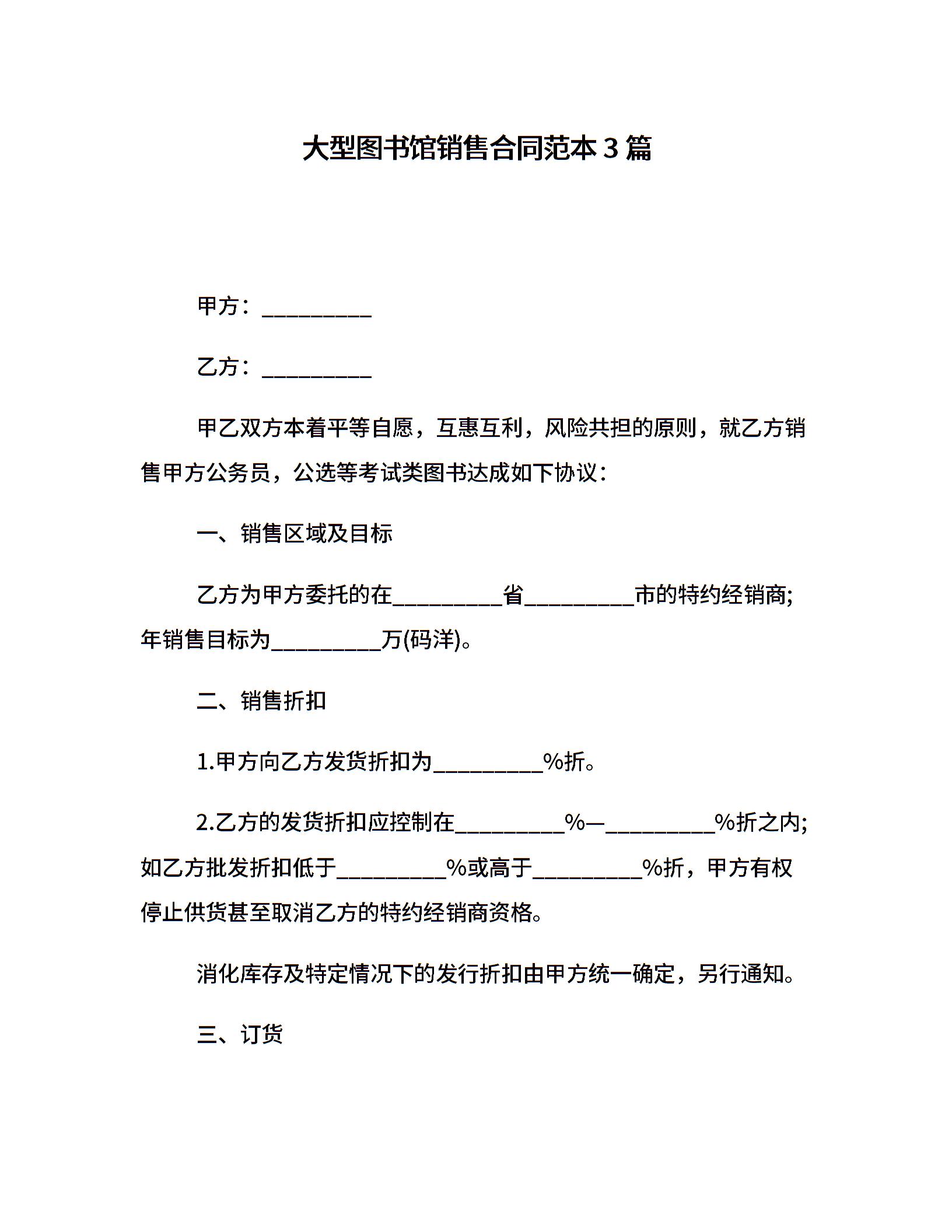 大型图书馆销售合同范本3篇