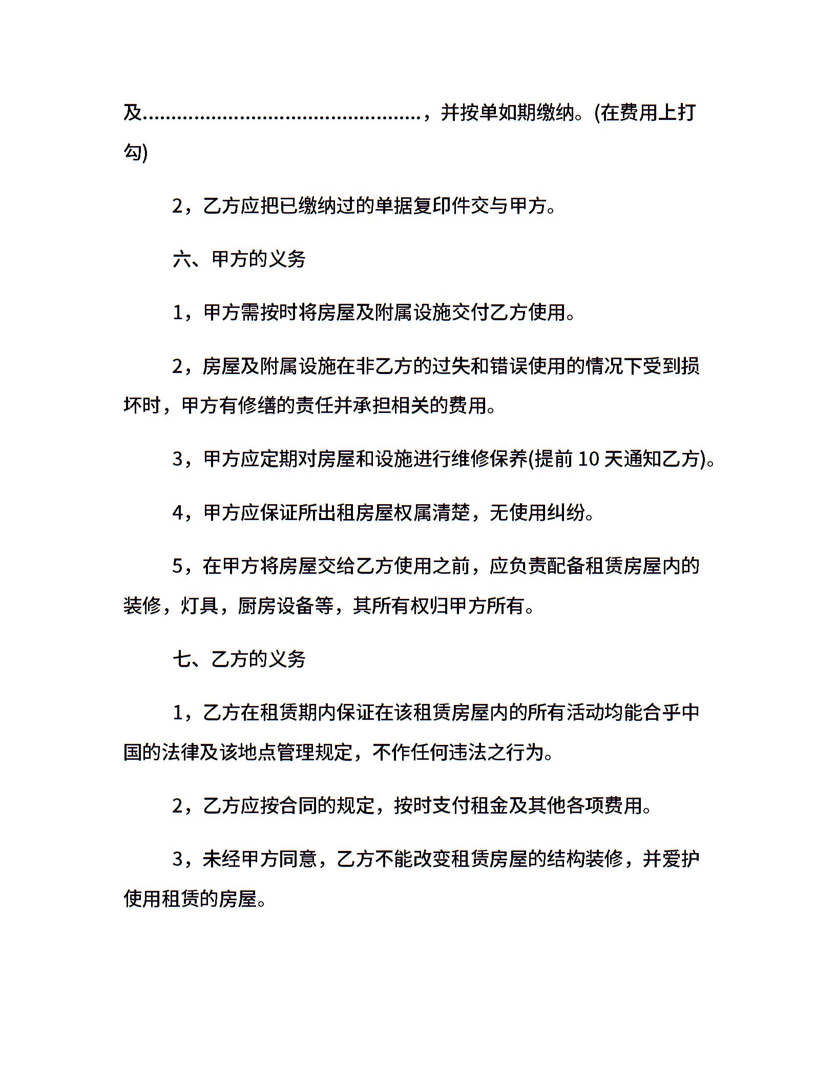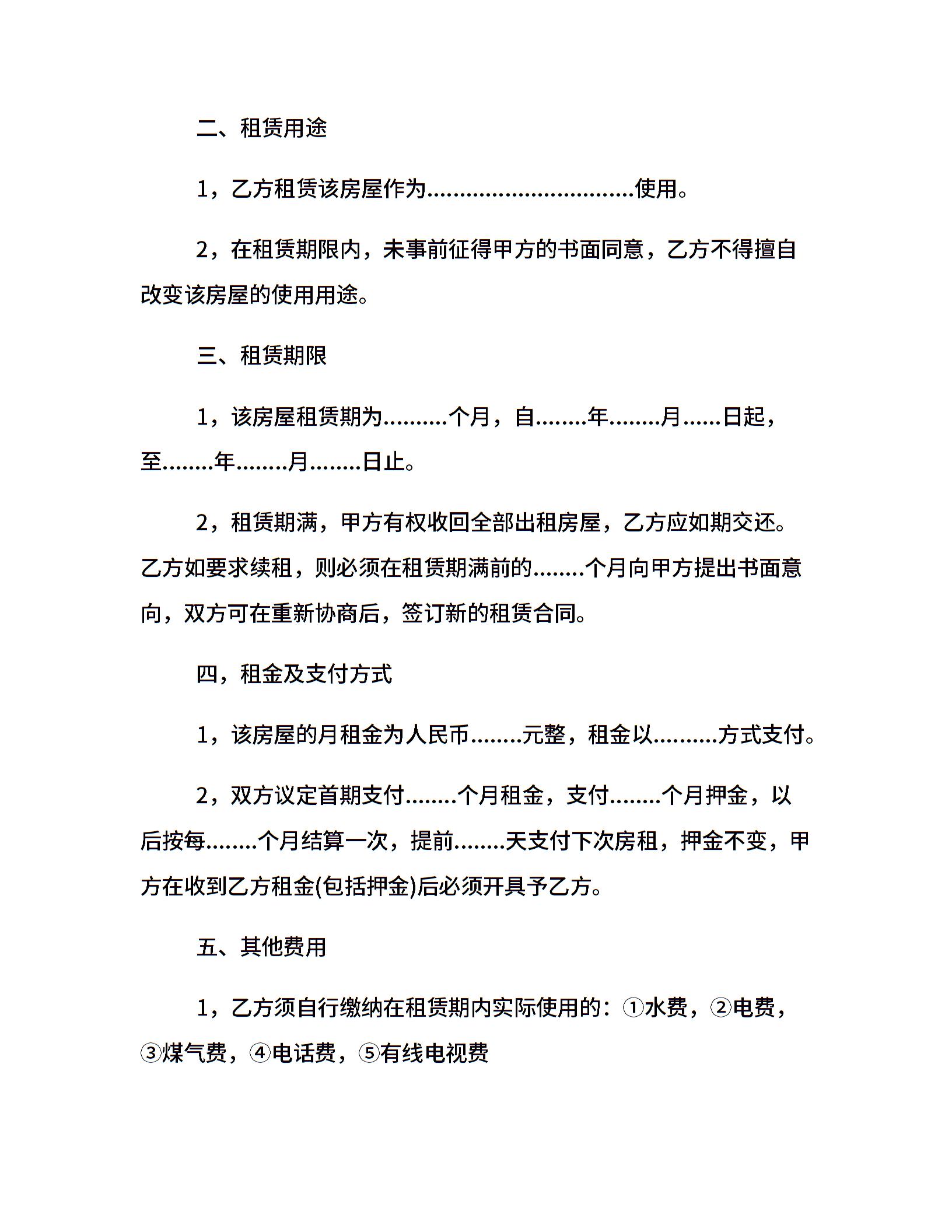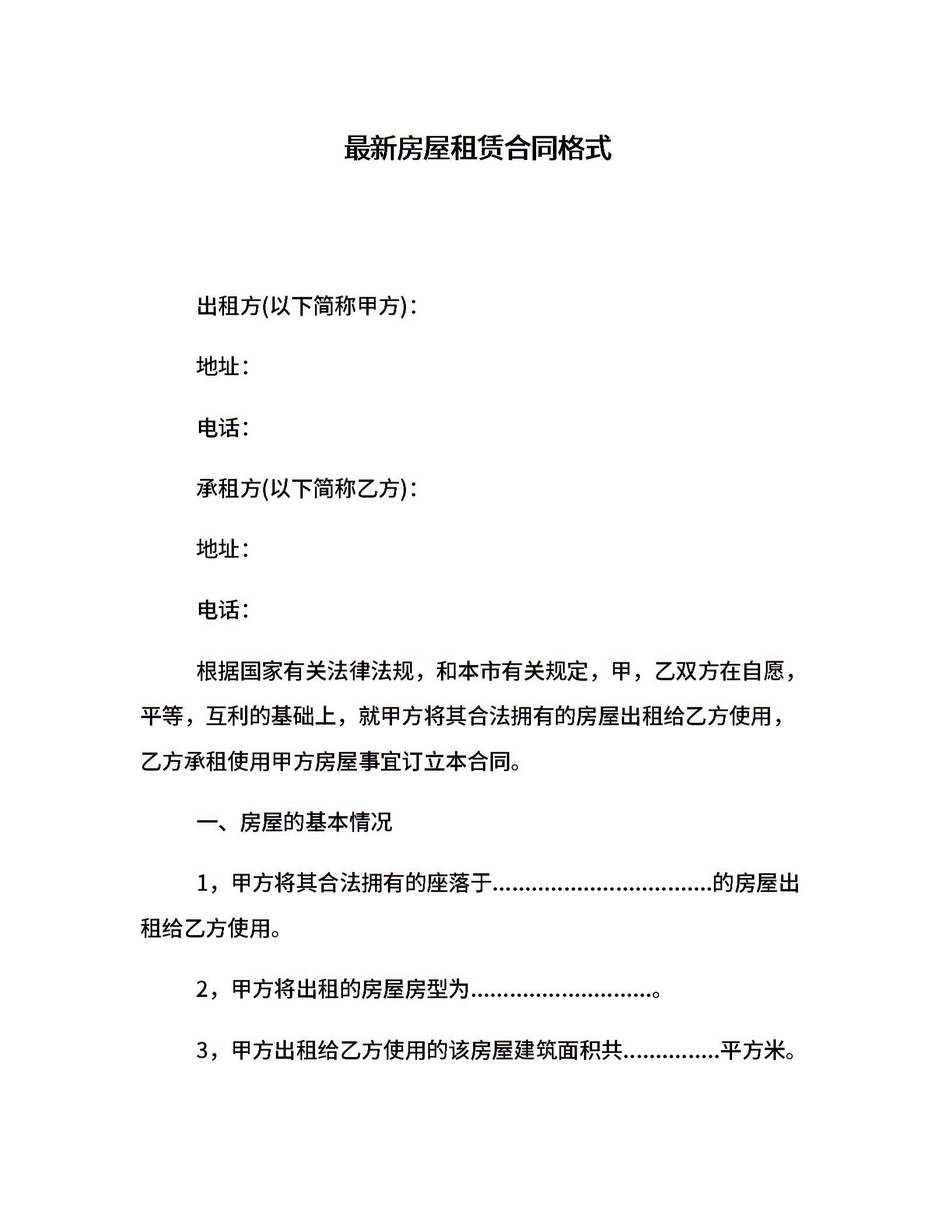 最新房屋租赁合同格式