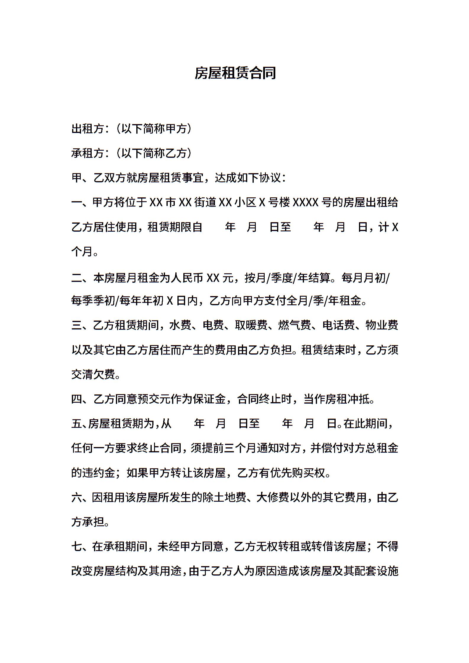 当前位置:量子办公 > 合同模板 > 房屋租赁 >