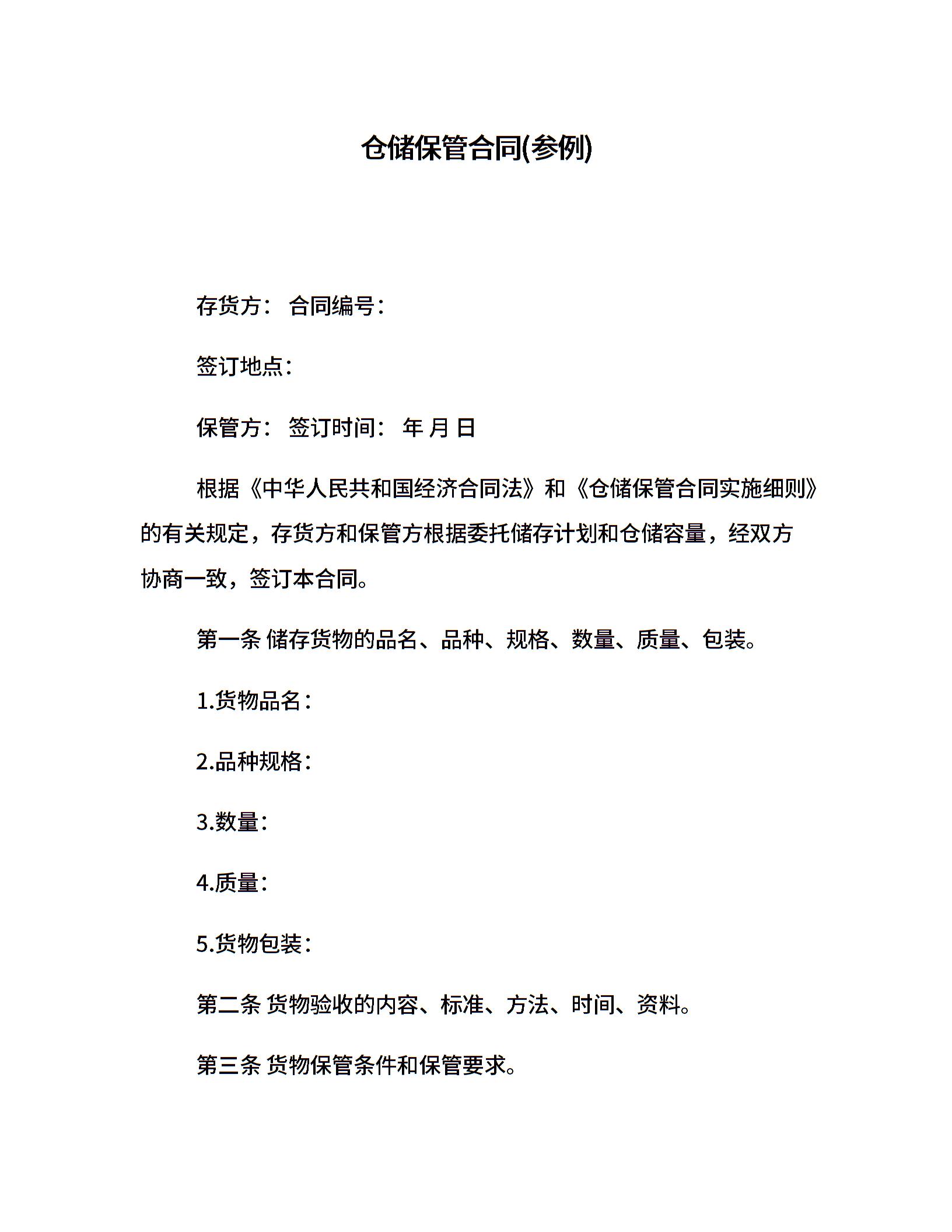 仓储保管合同(参例)