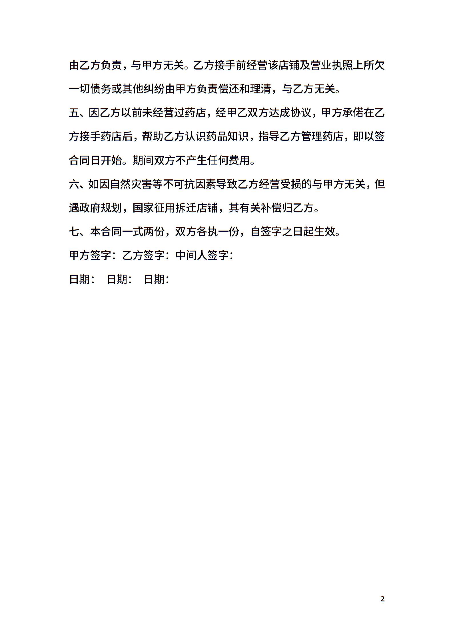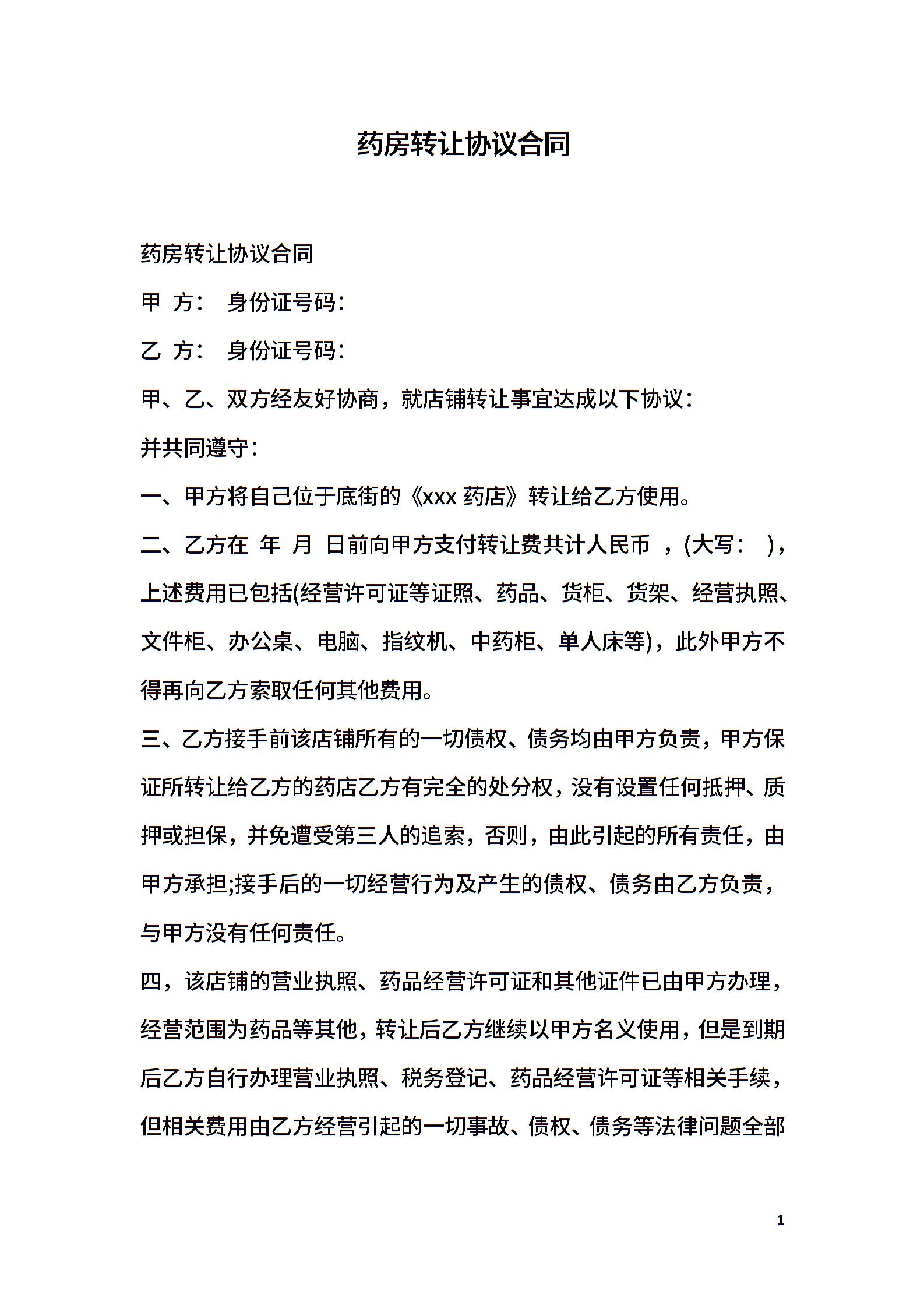 药房转让协议合同