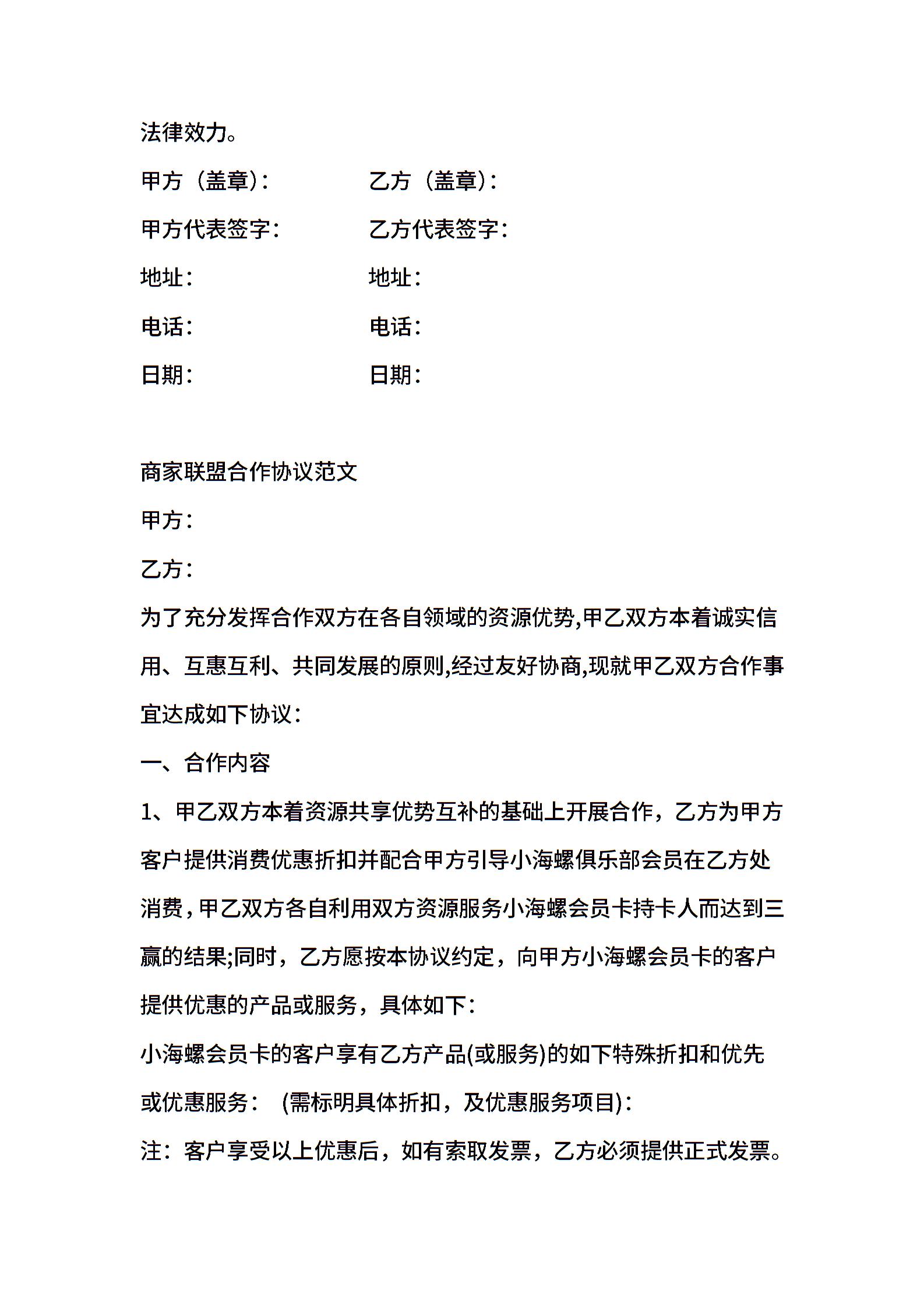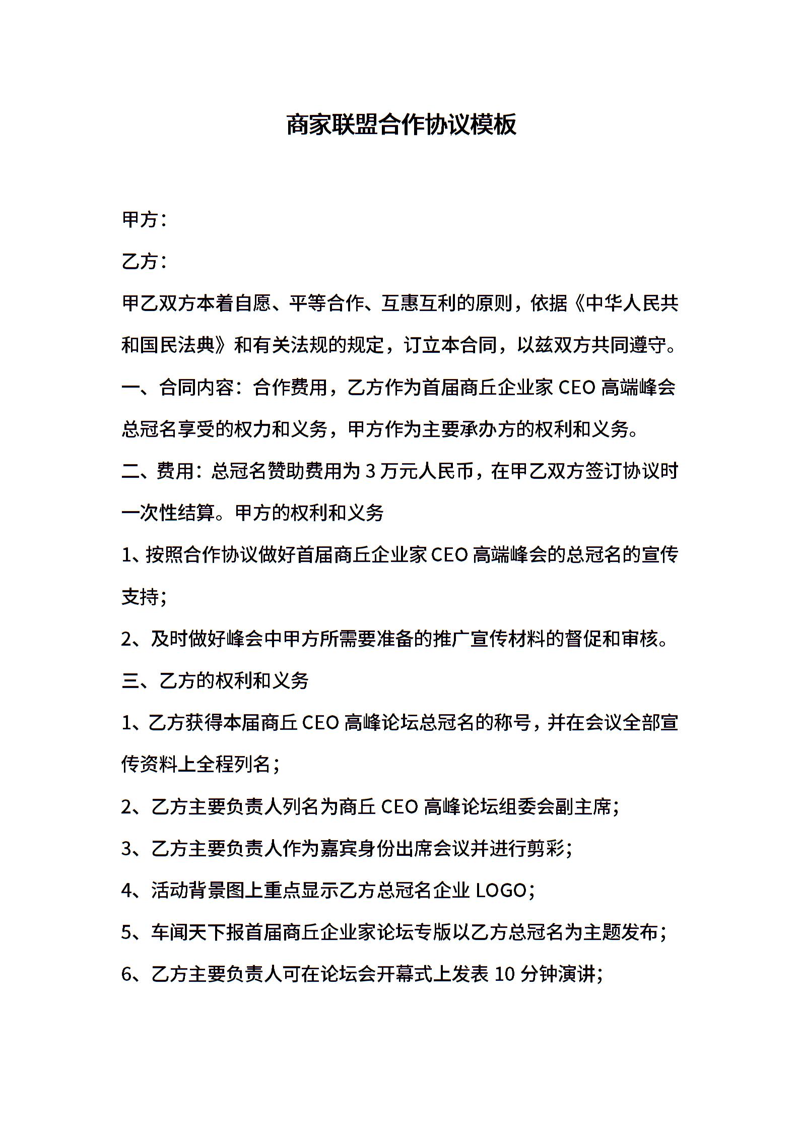 商家联盟合作协议模板
