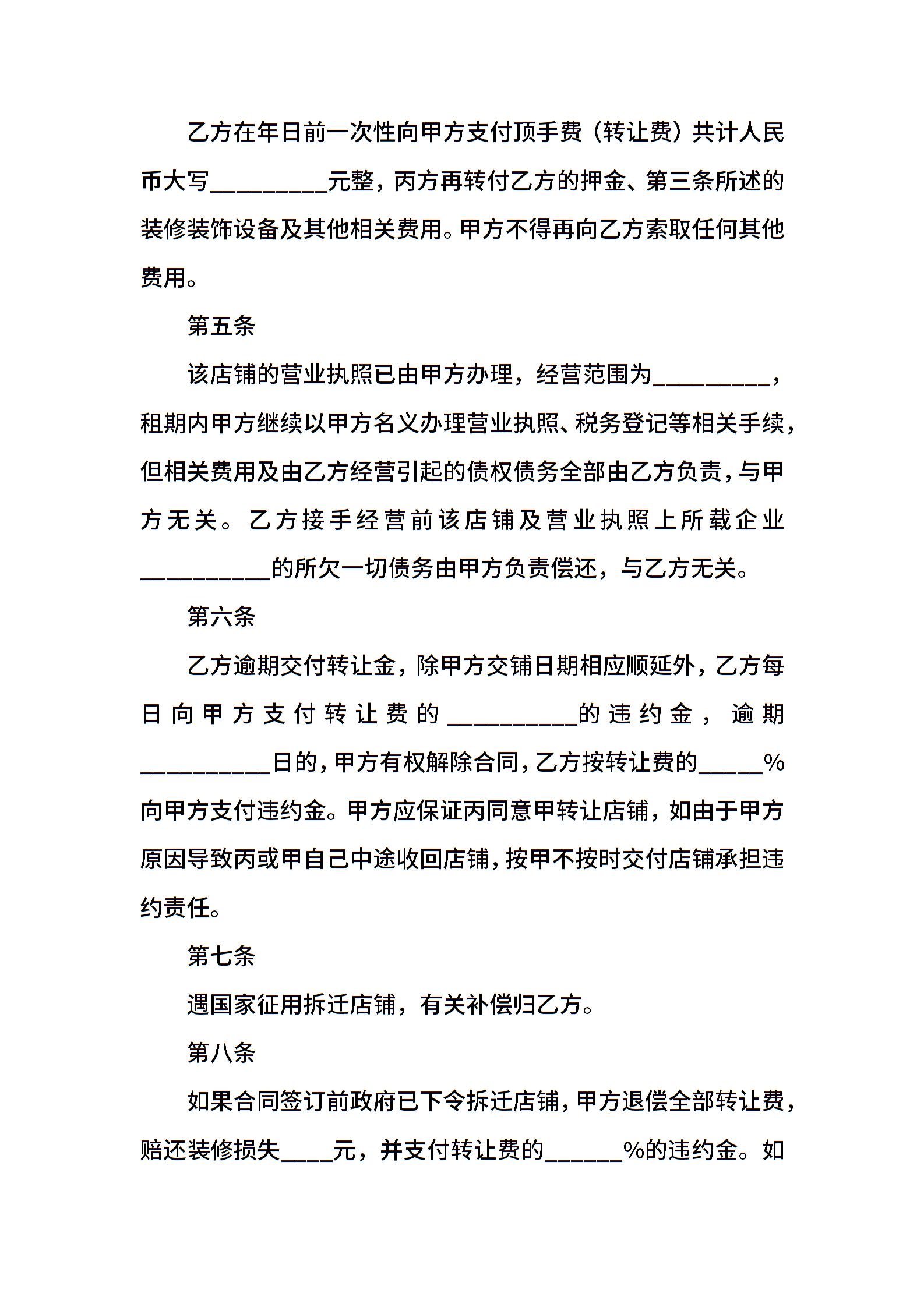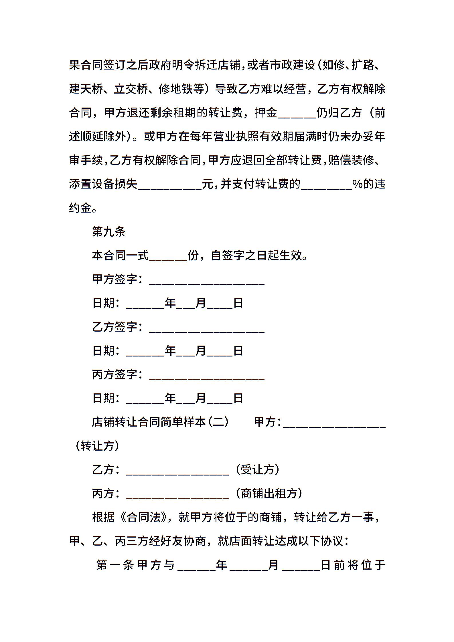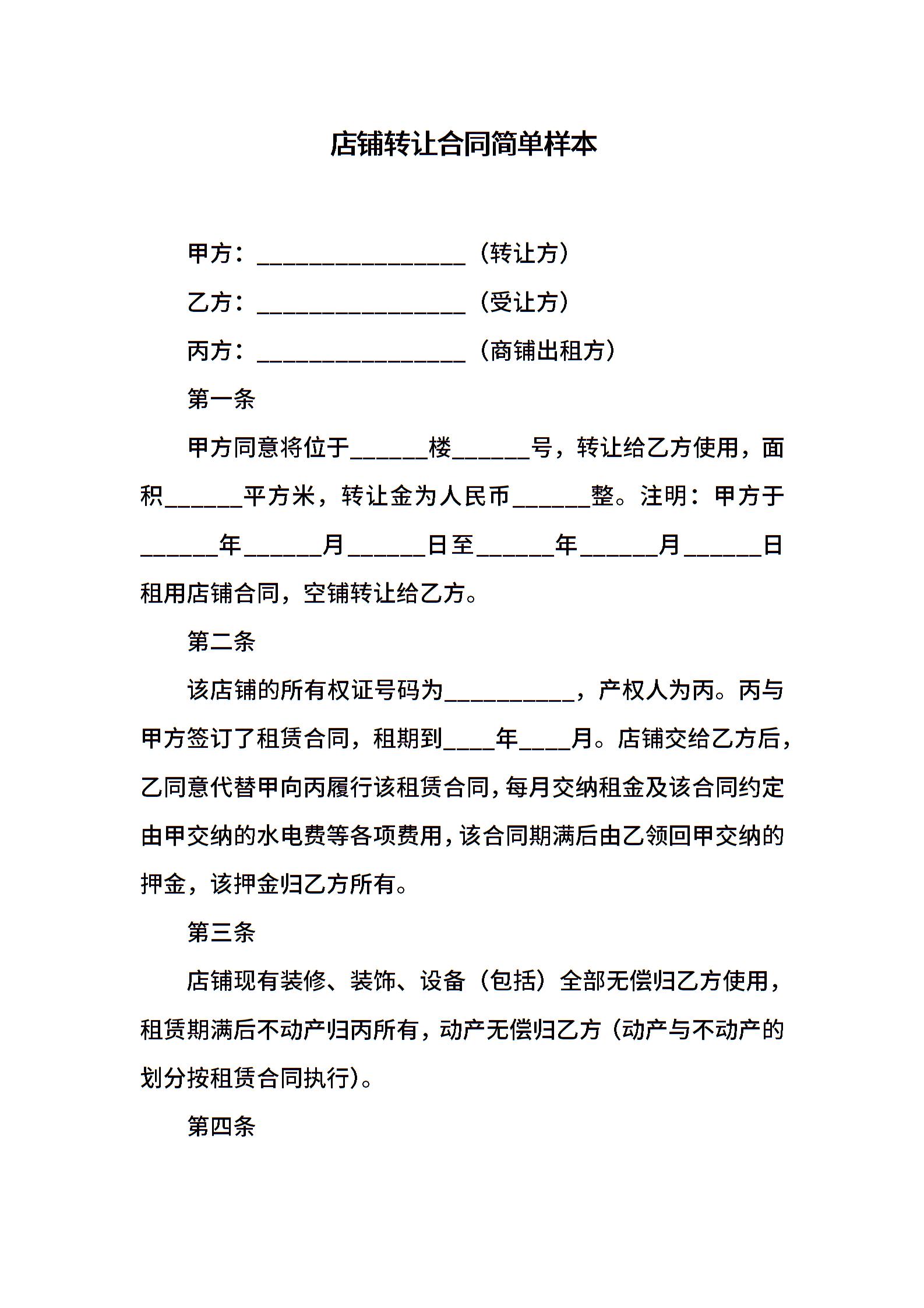 店铺转让合同简单样本