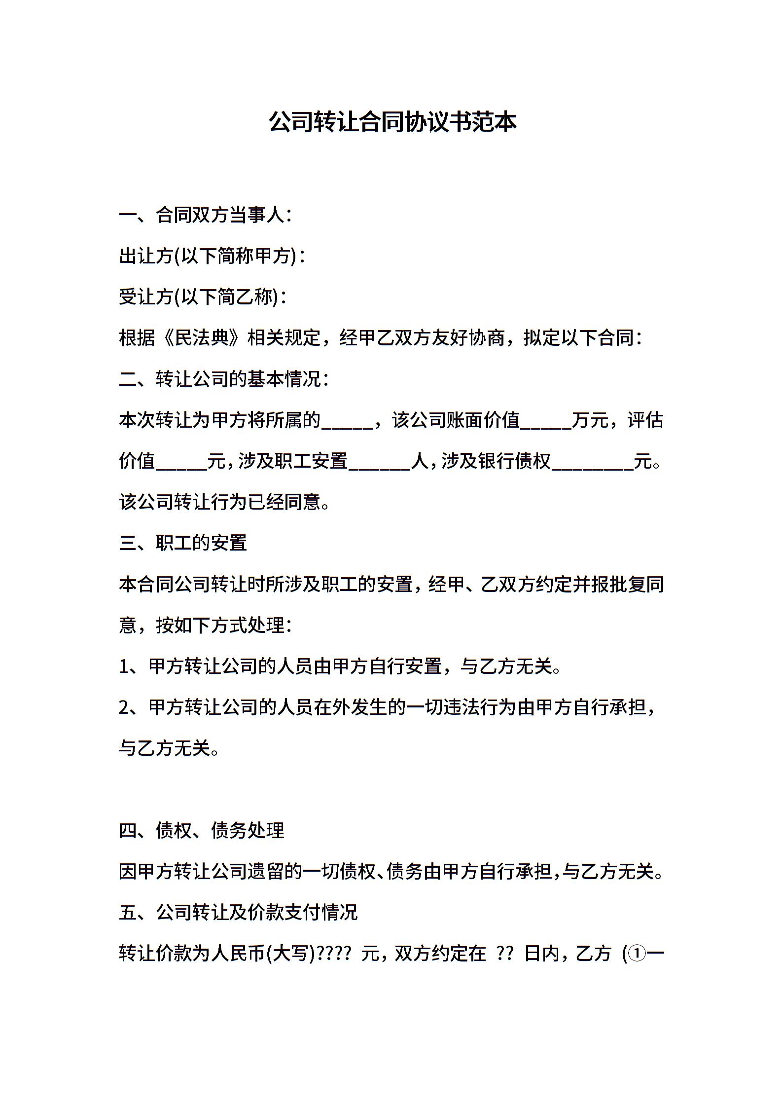 公司转让合同协议书范本