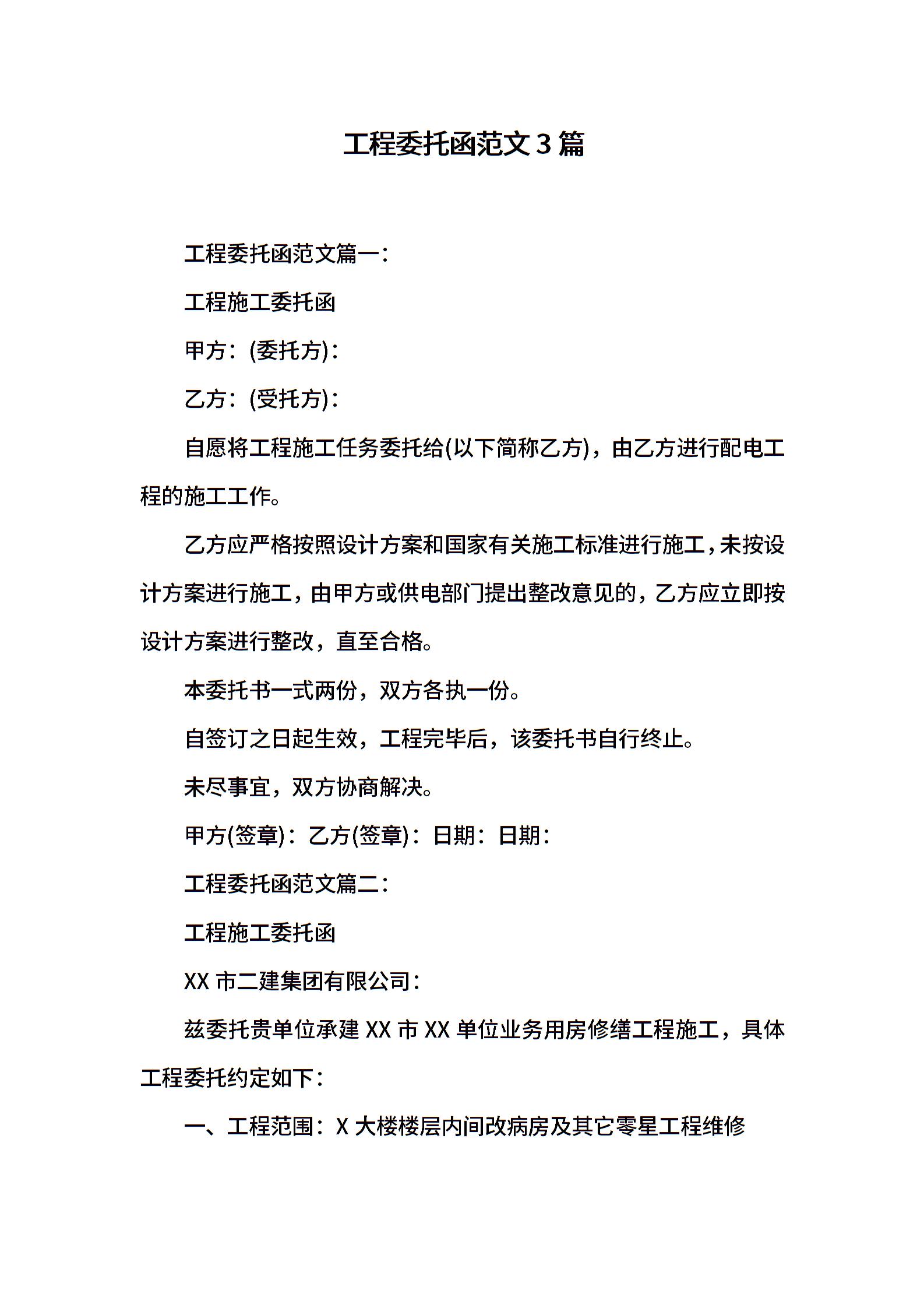 工程委托函范文3篇
