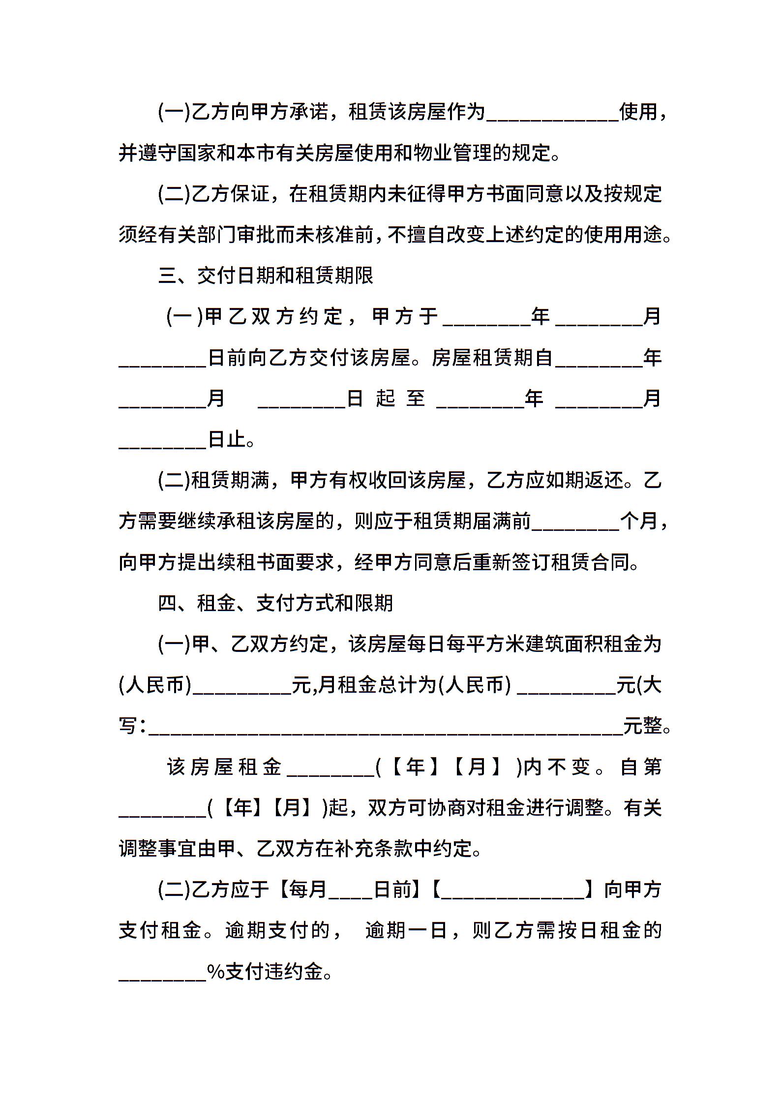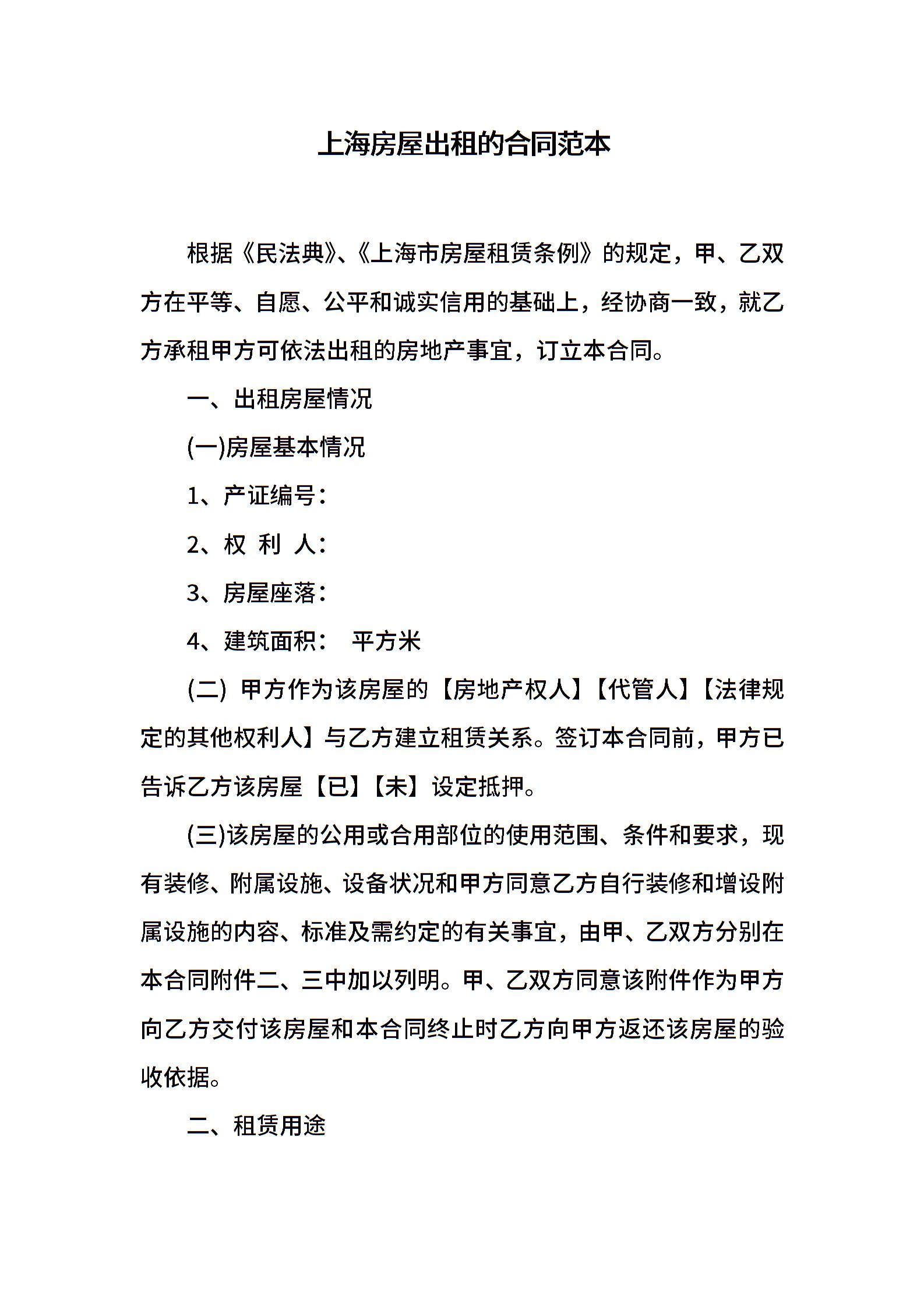 上海房屋出租的合同范本