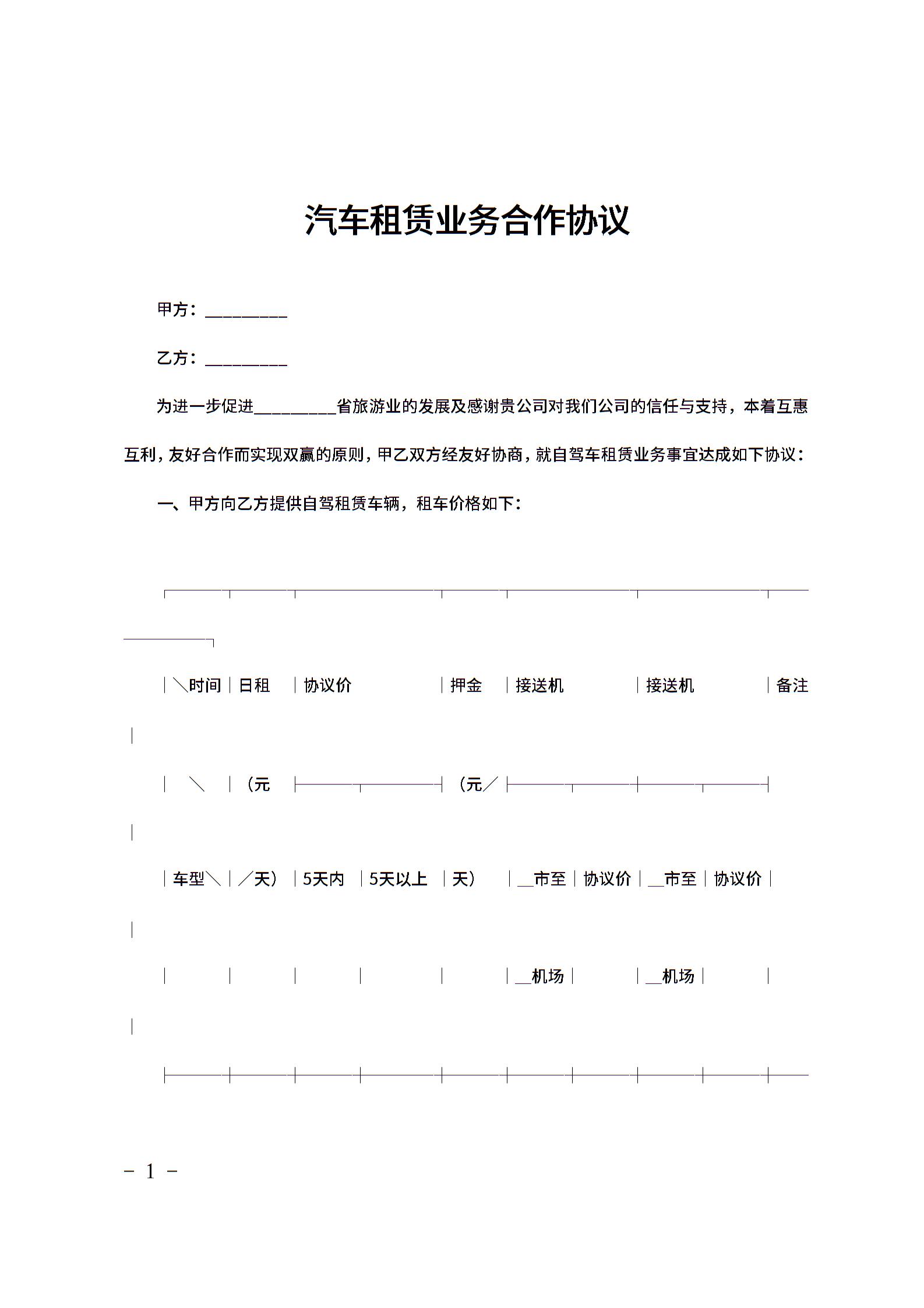 汽车租赁业务合作协议范文