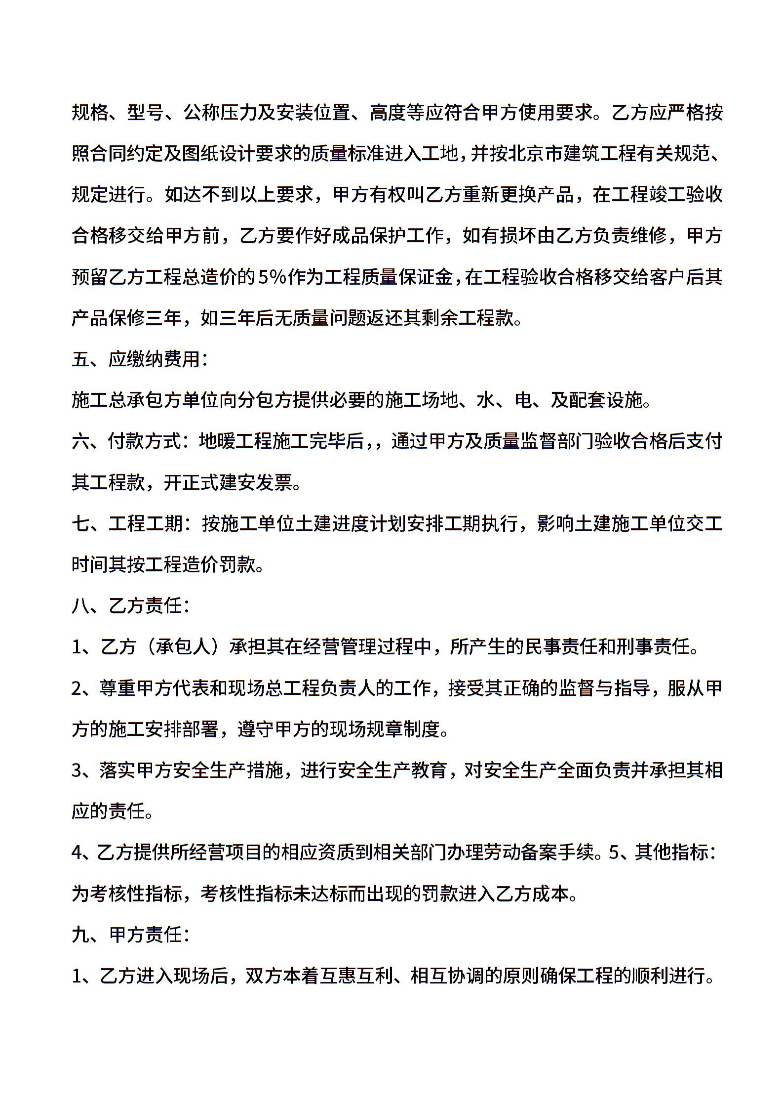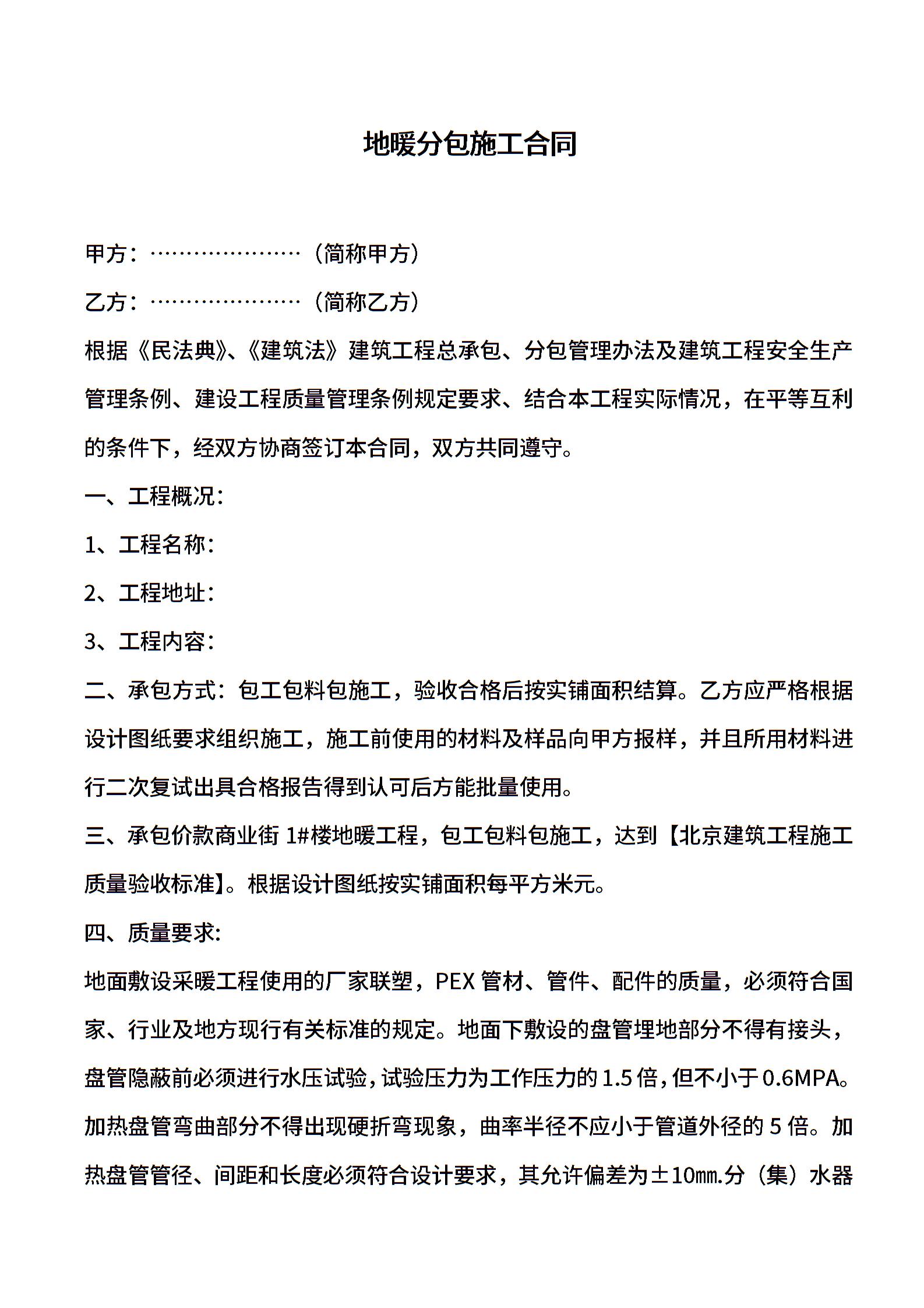 地暖分包施工合同