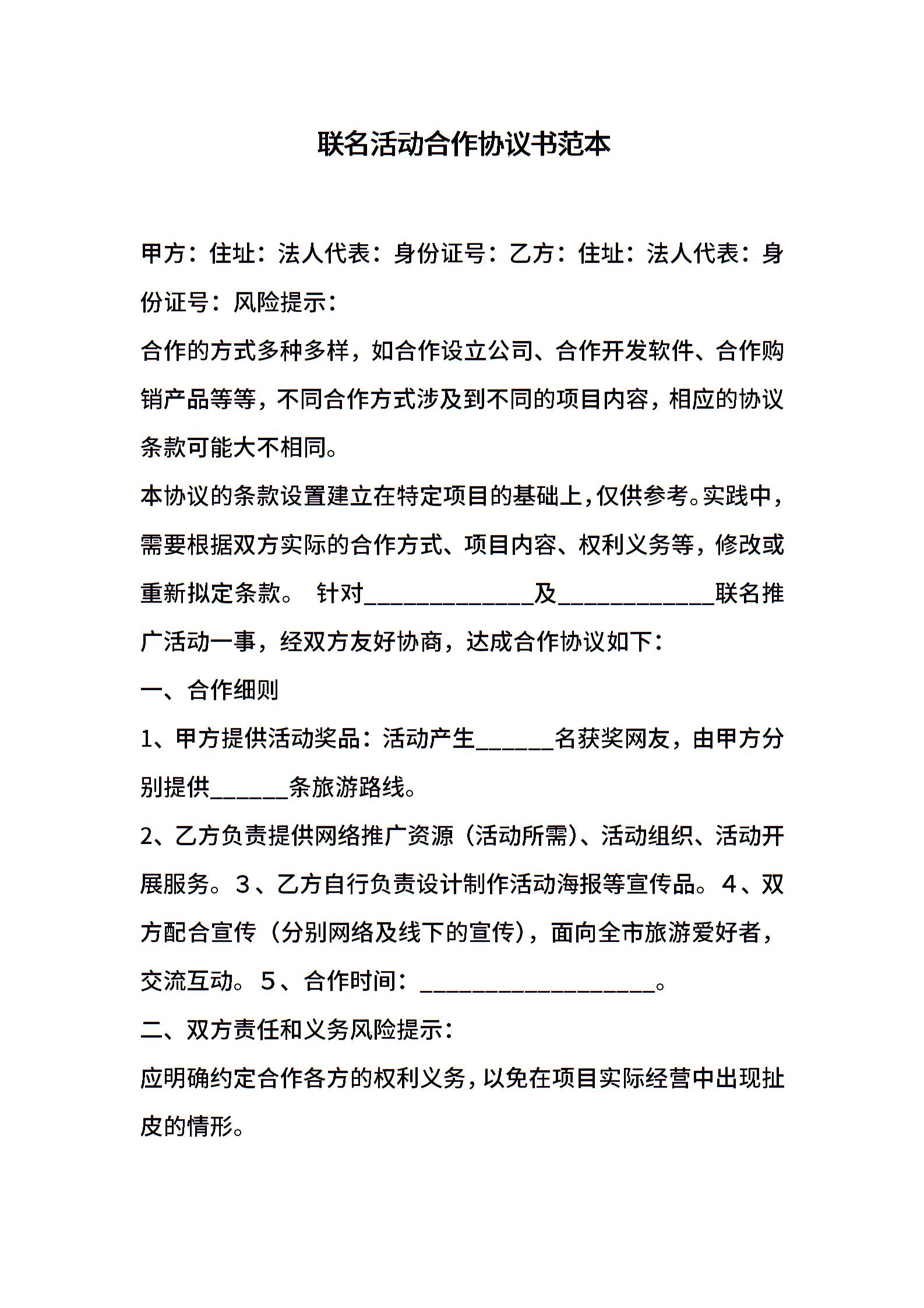 联名活动合作协议书范本