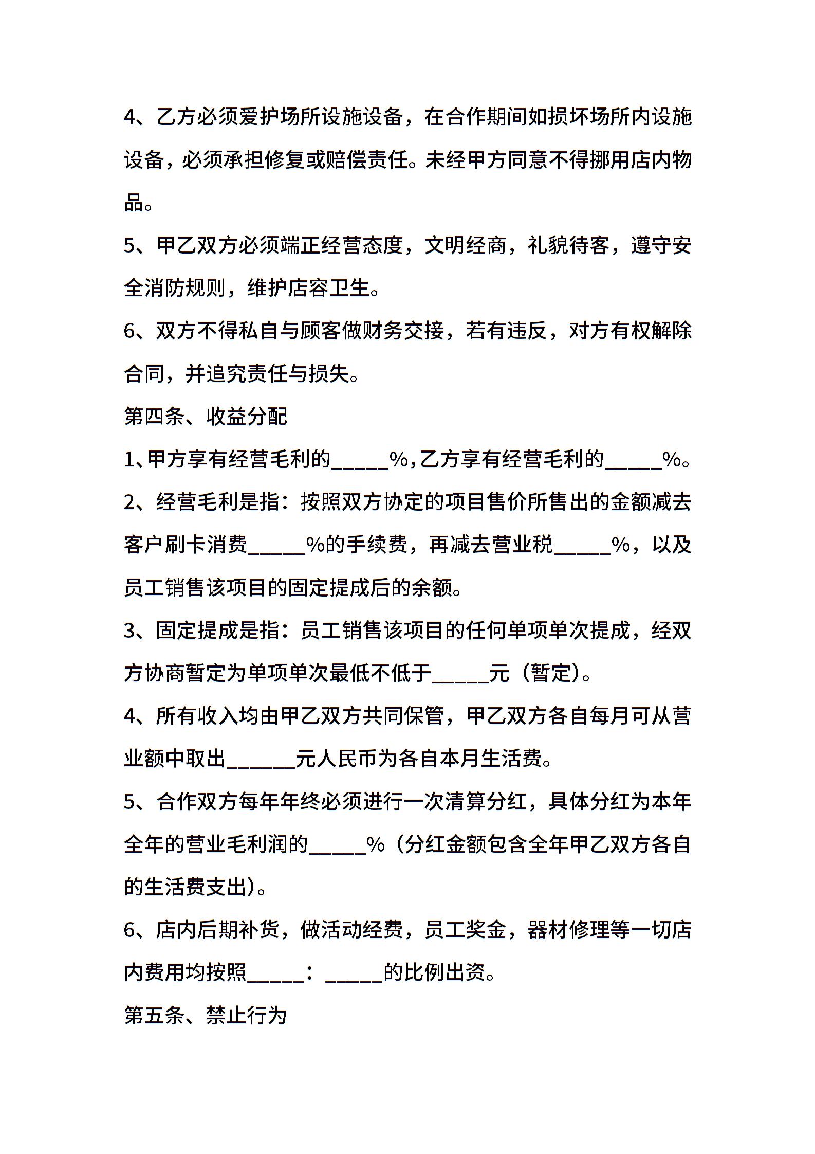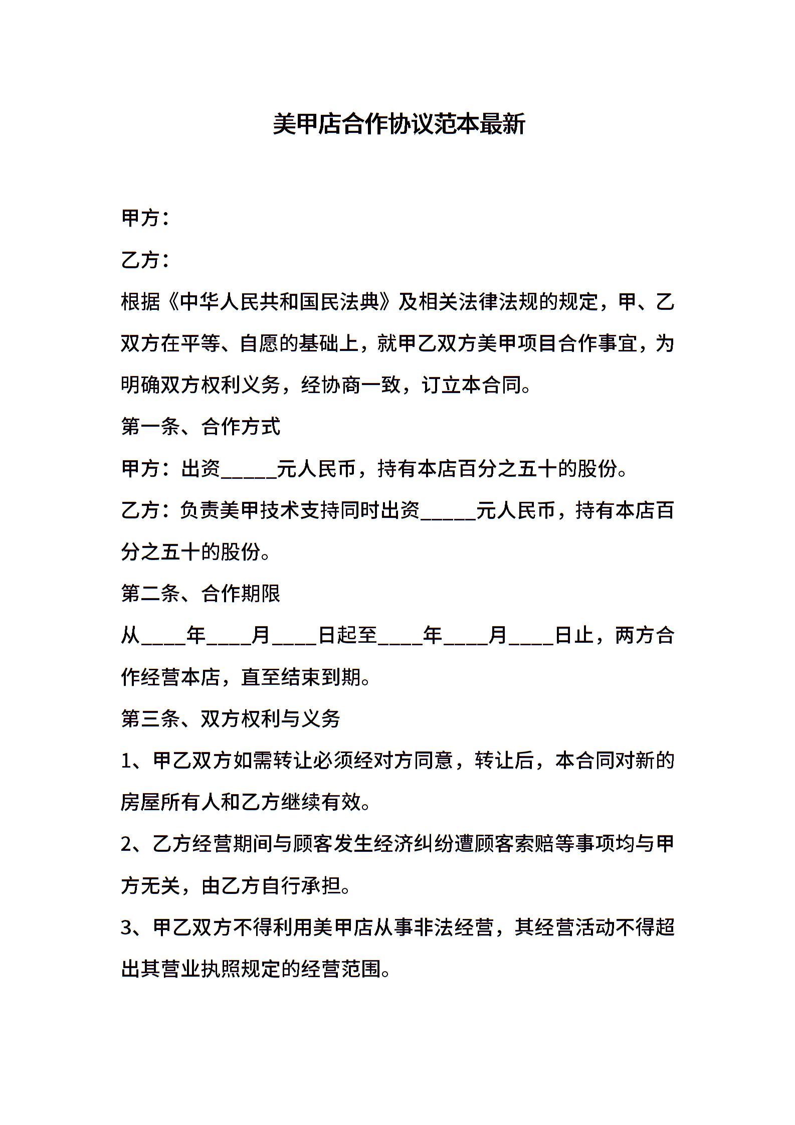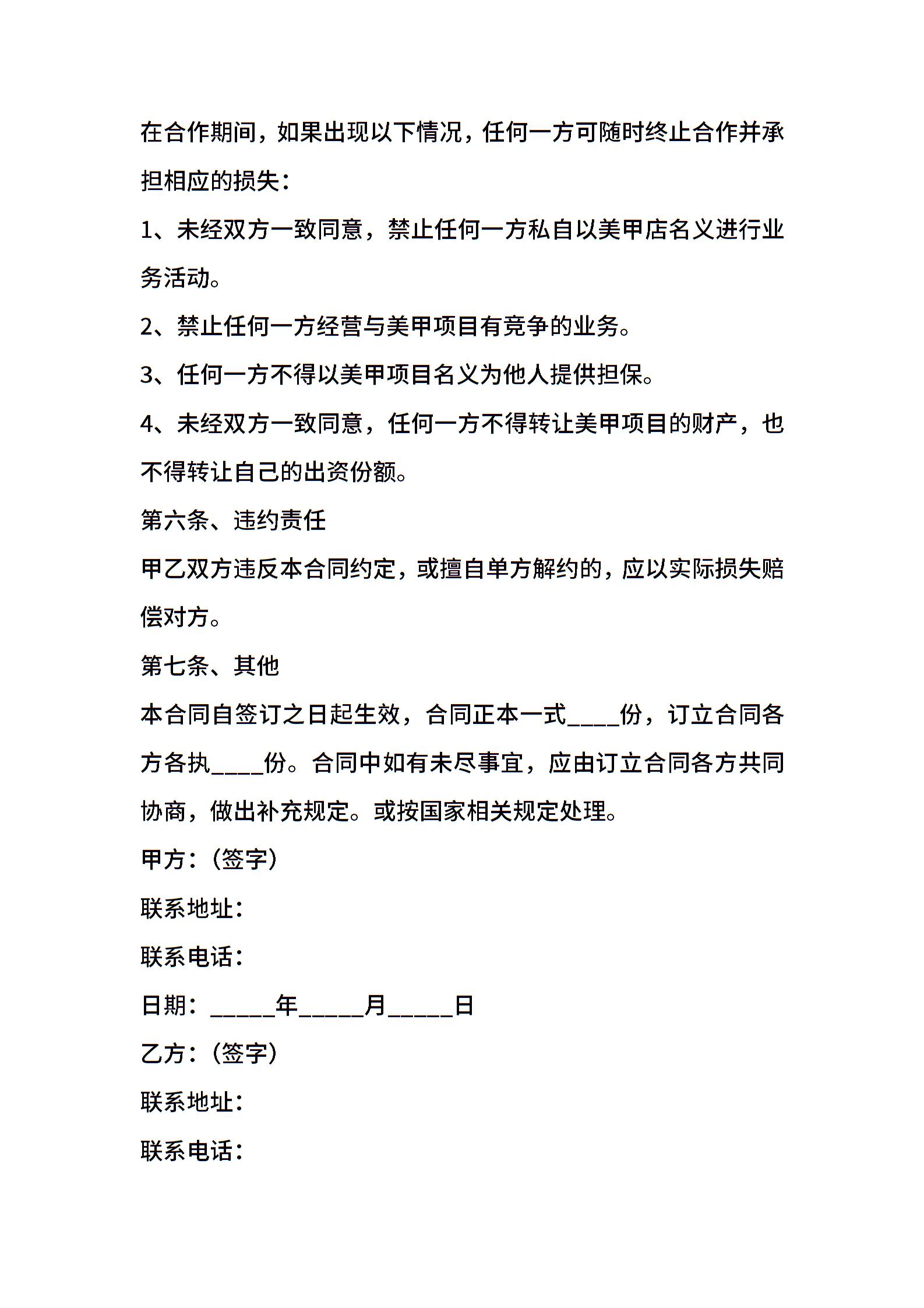 美甲店合作协议范本最新