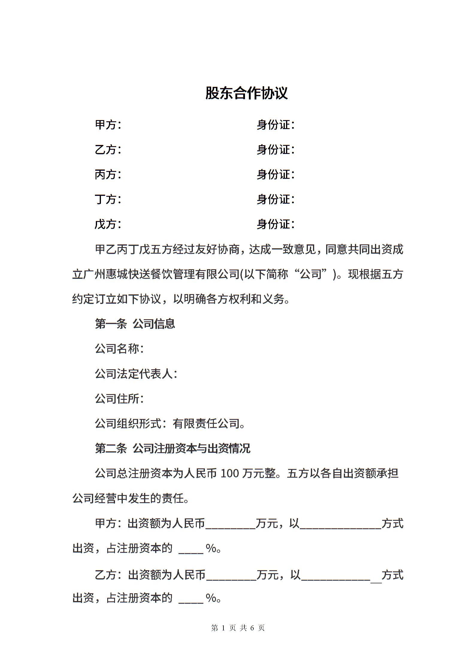 公司股东合作协议