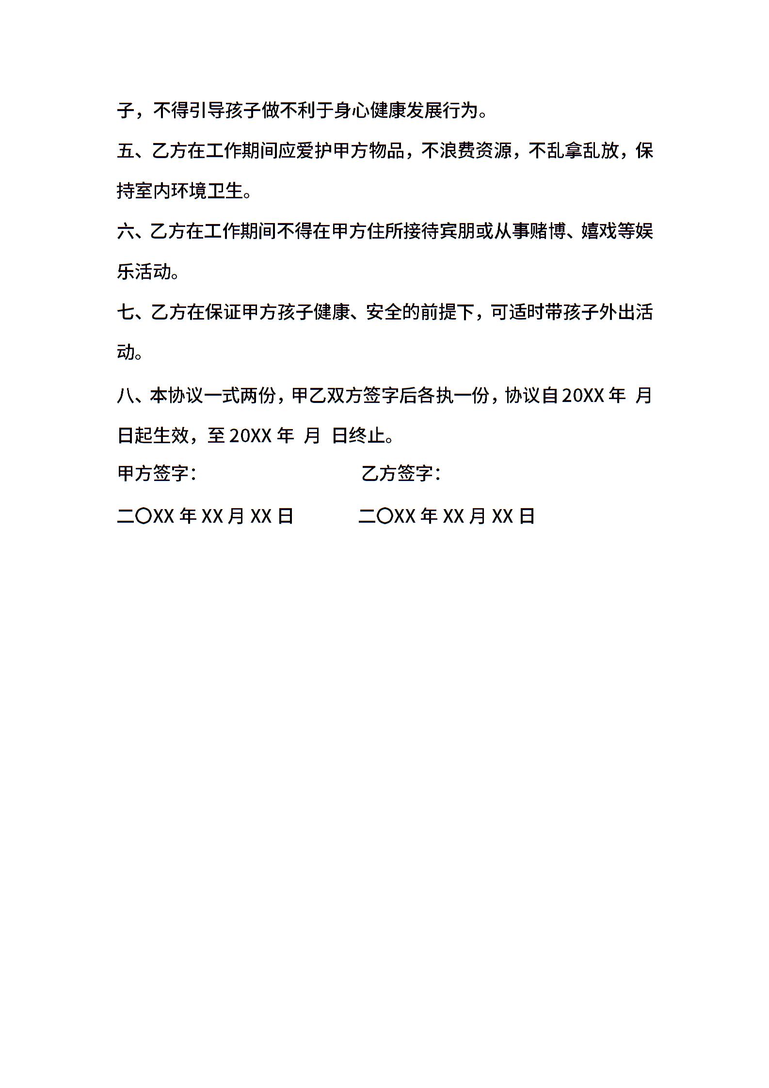 • 分类 保姆合同