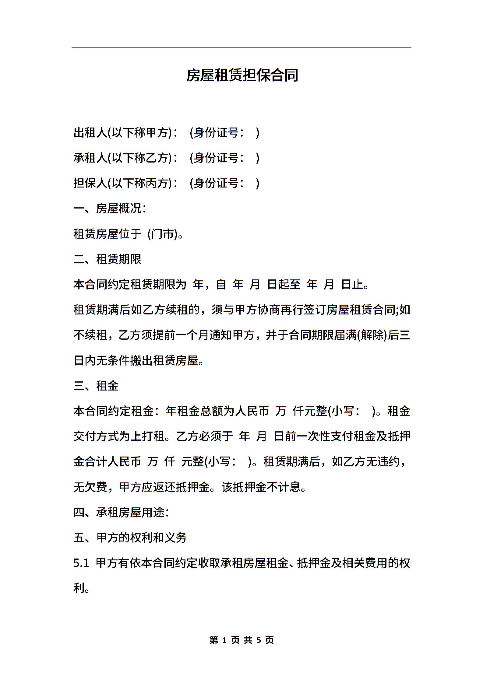 房屋租赁担保合同