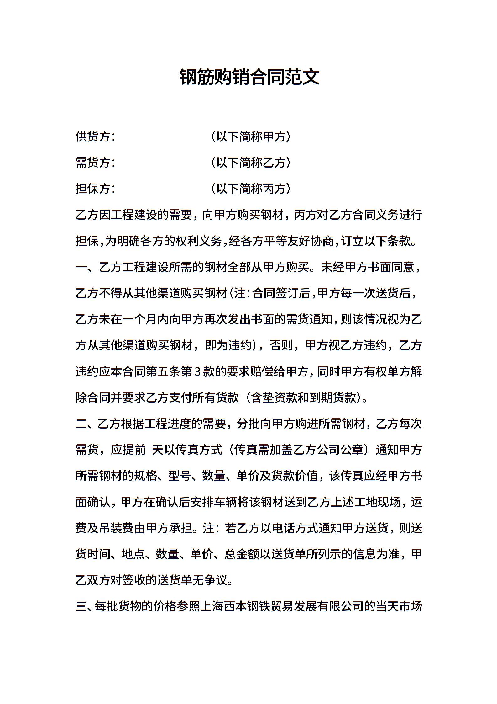 钢筋购销合同范文