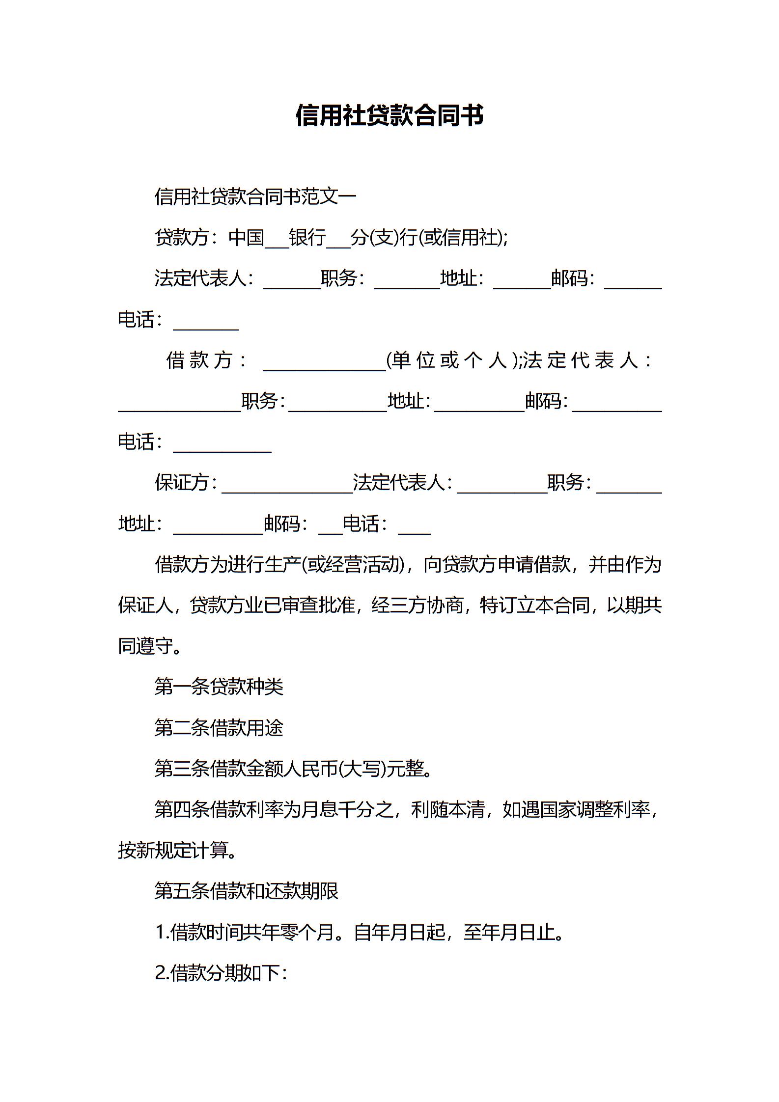 信用社贷款合同书
