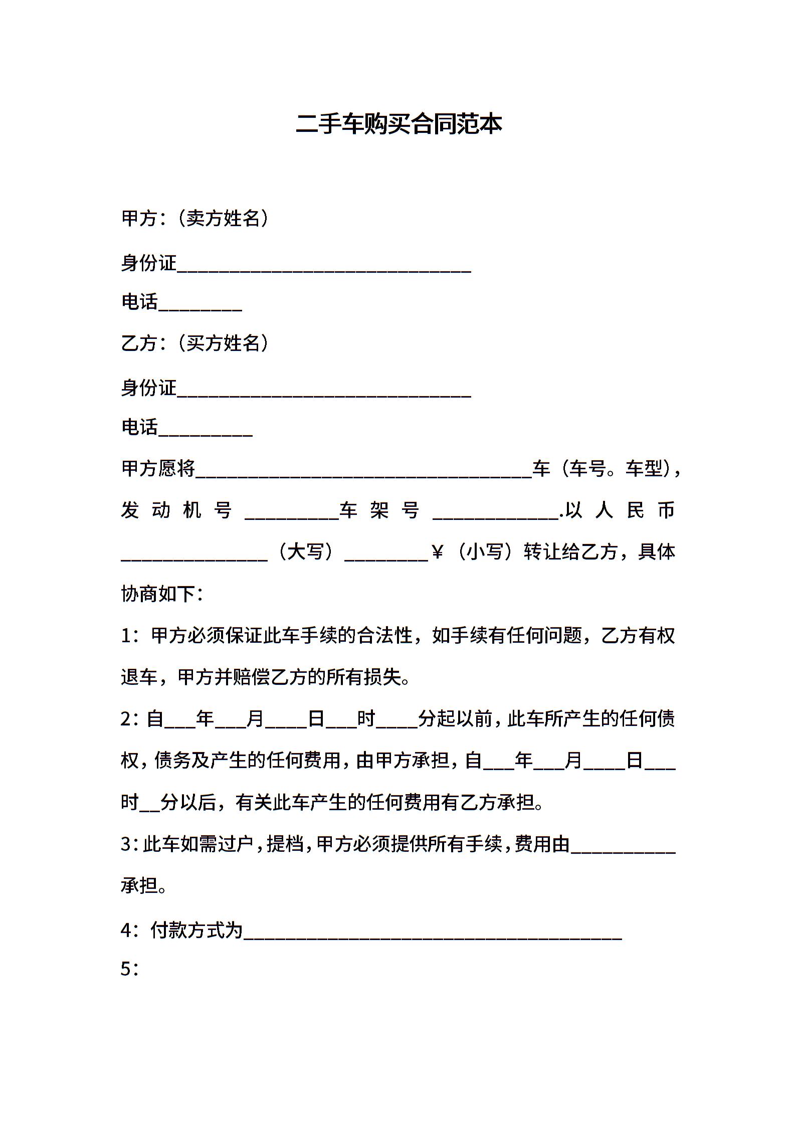 二手车购买合同范本